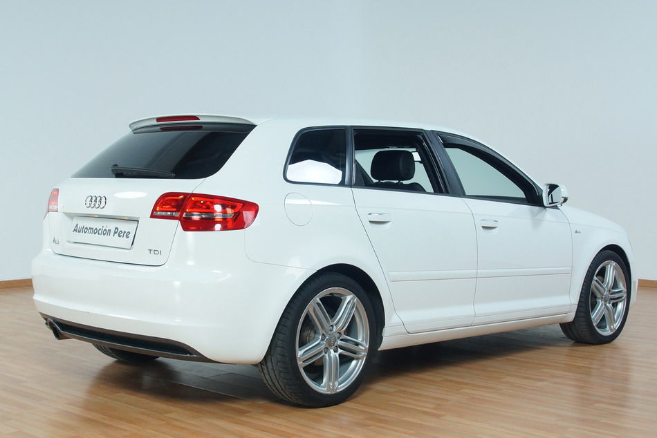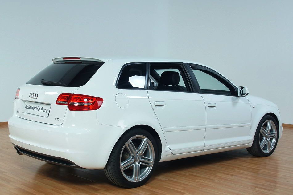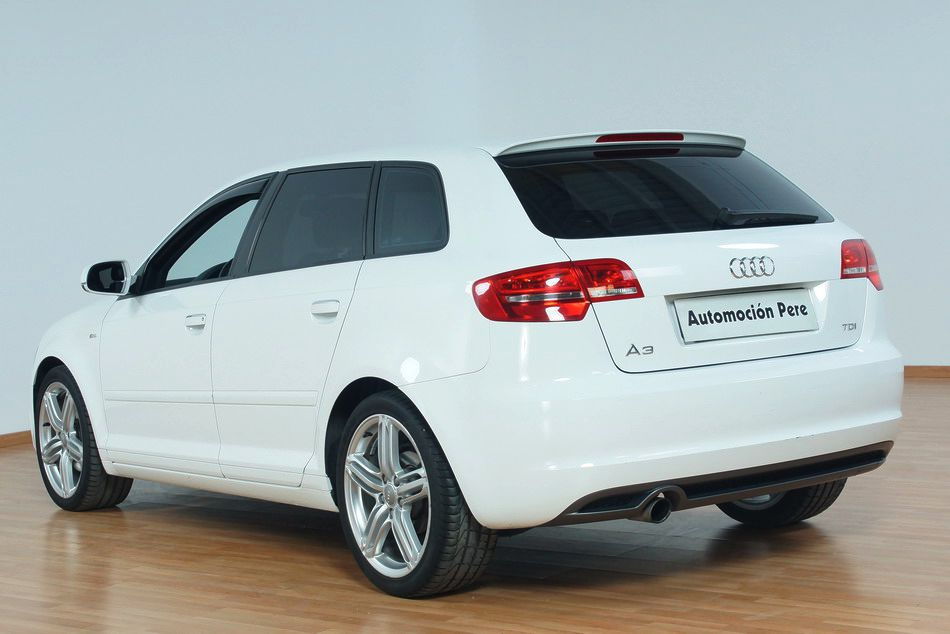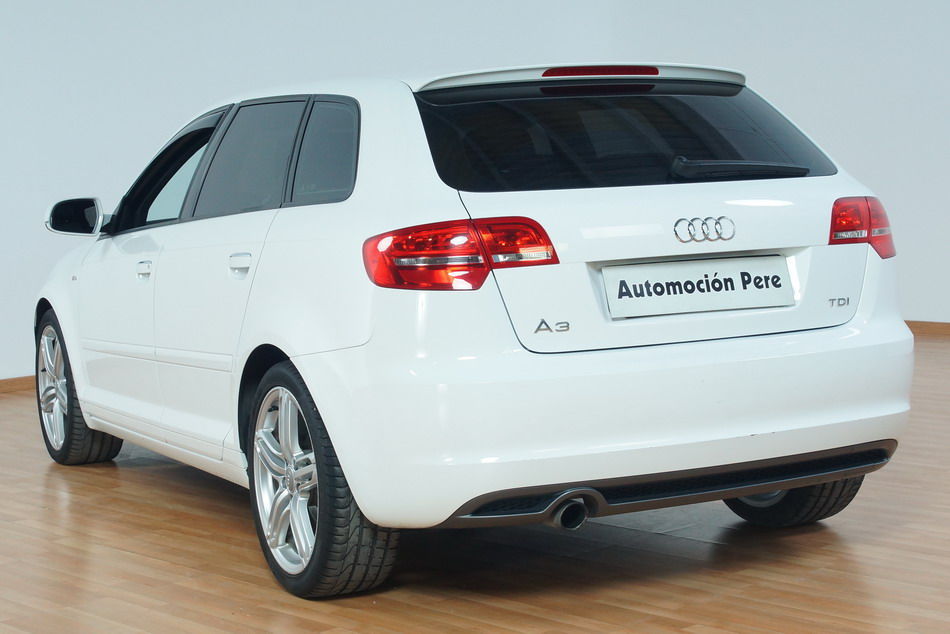 Audi A3 2.0 SportBack TDi 140 CV 6 Vel. S-Line. Año 13/09/2011. Color Blanco. Climatizador Bi-Zona, ABS, ESP, 10 Airbags, 4 Elevalunas Eléctricos, Cierre Centralizado con Mando, Llantas 17", Volante Spor de Cuero, Ordenador de Viaje, Asientos Deportivos, Radio/CD+Aux+MP3, Muy Equipado. Impecable.