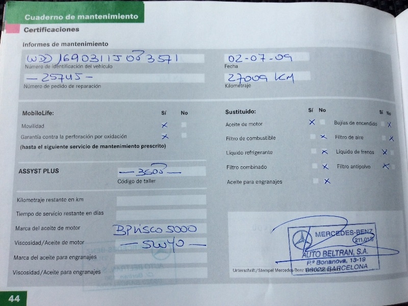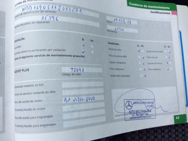 Mercedes Benz A150 Avantgarde Automático/Secuencial 95 CV. Aire acondicionado, Techo de láminas eléctric. (Cristal), Airbag conductor/acompañante, Airbag lateral (Sidebag) delantero, Elevalunas eléctric. delanteros y Traseros, Programa electrónico de estabilidad (ESP), Sistema antibloqueo (ABS), Cierre centralizado con Mando a distancia, Caja de cambios automática continua - Autotronic.
