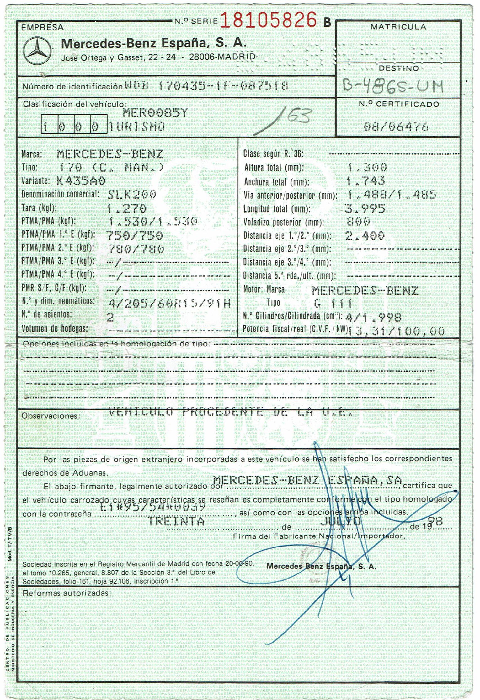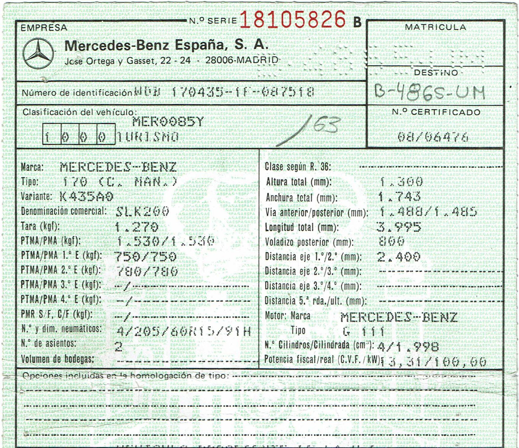 Mercedes Benz 200 SLK 136 CV. Vehículo Nacional. Climatizador, ABS, ESP, Asientos de Cuero, Llantas, Elevalunas Eléctricos, Cierre Centralizado con Mando, Dirección Asistida, Radio/CD, Faros Antiniebla.