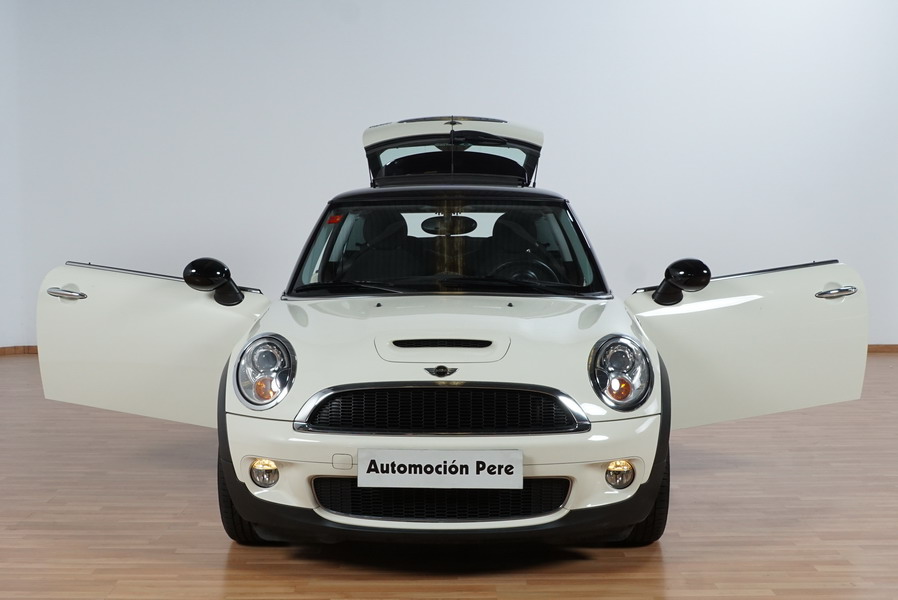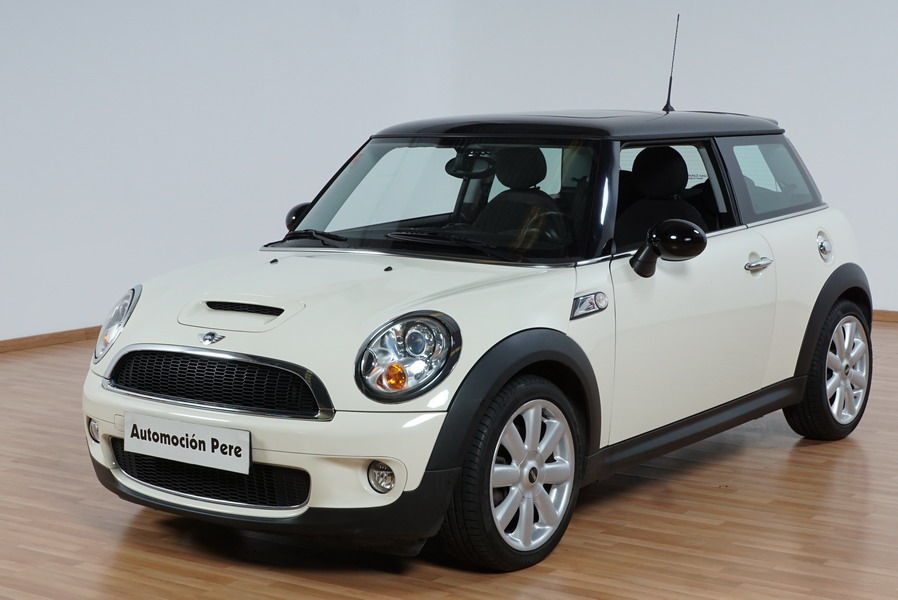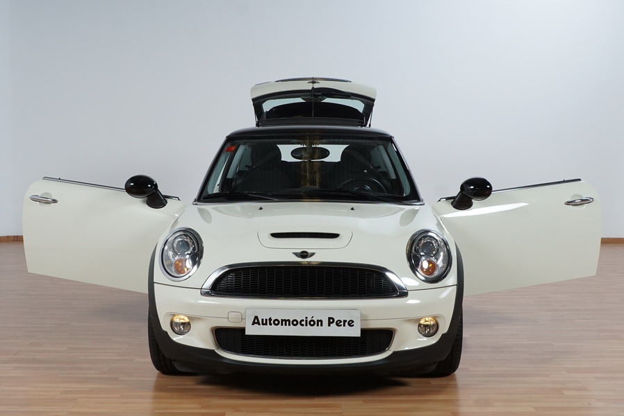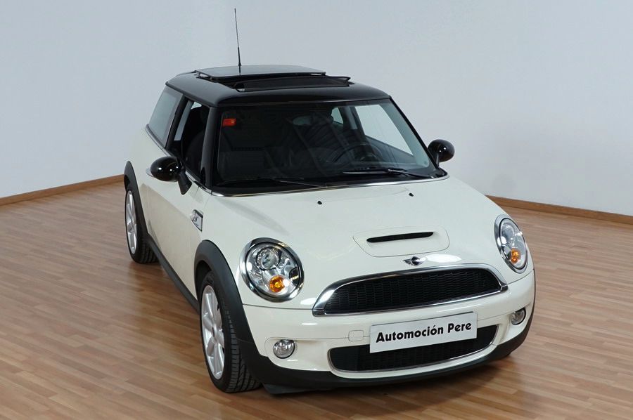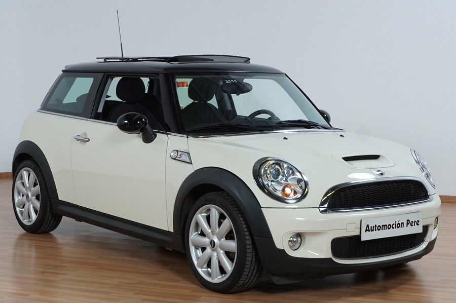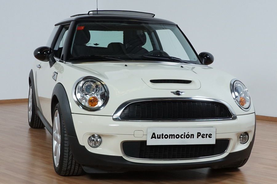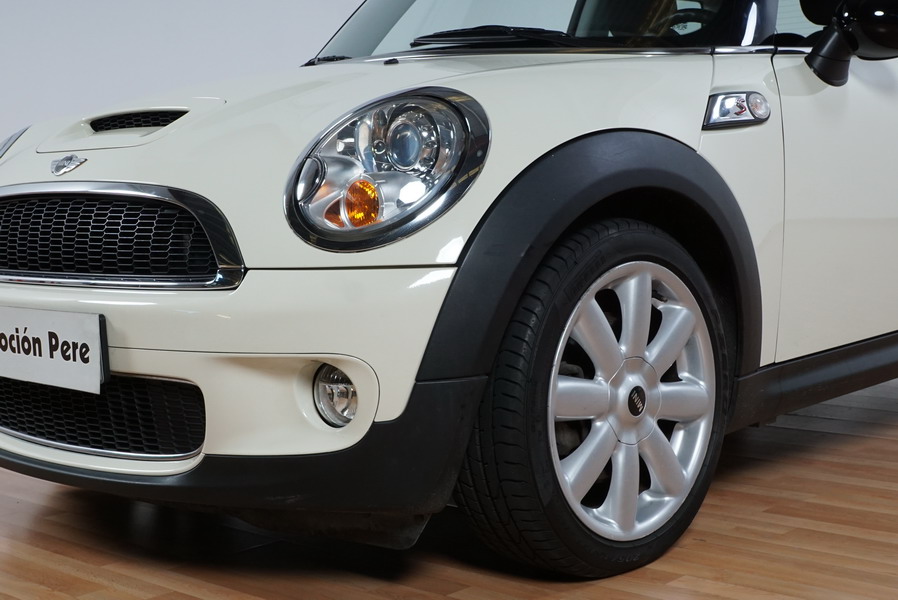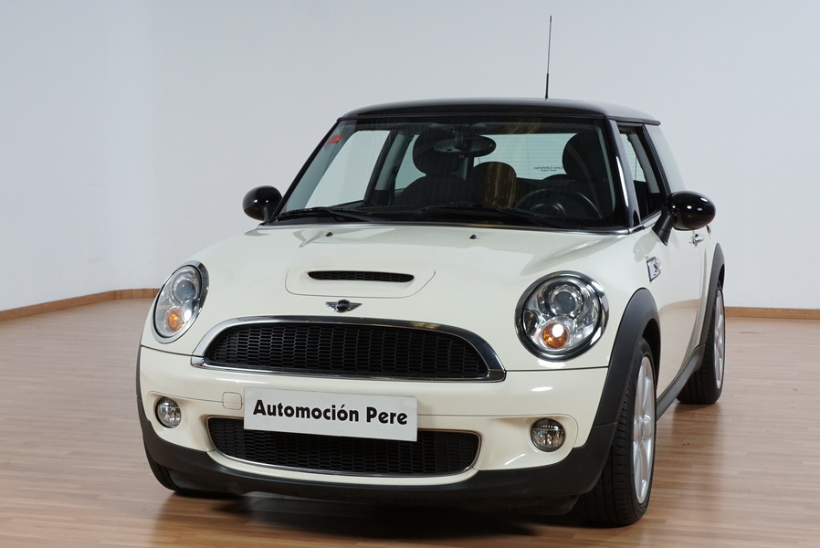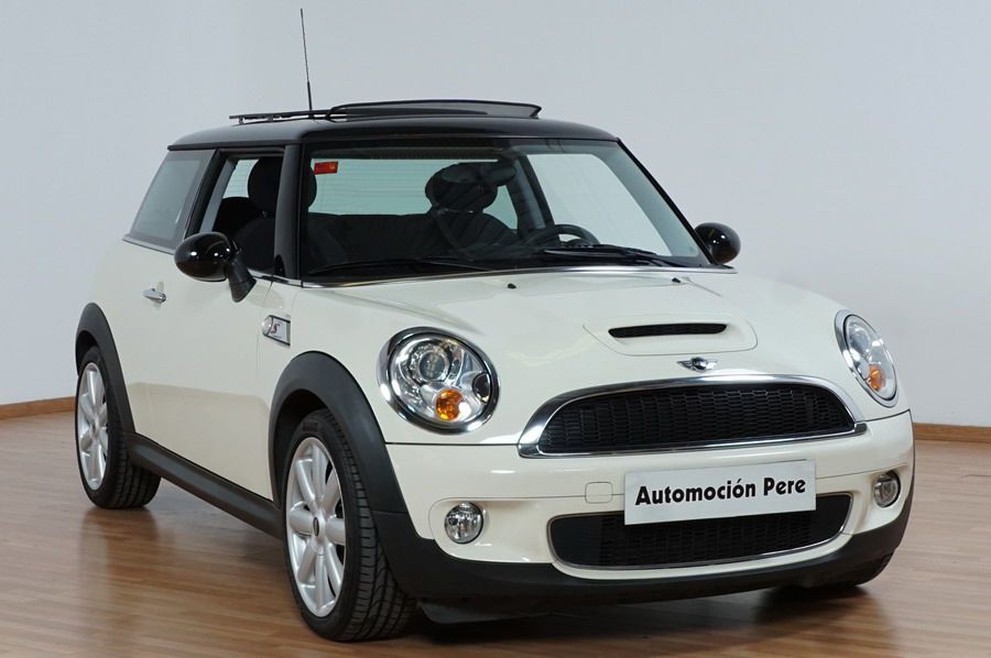 Mini Cooper S 1.6i 175 CV 6 Vel. Año 06/2007. Color Blanco. Climatizador, ABS, ESP, 8 Airbags, Techo Solar Panorámico, Faros Bi-Xenon, Asientos de Deportivos de Cuero/Tela, Ordenador de Viaje, Alarma, Llantas 18", Elevalunas Eléctricos, Cierre Centralizado con Mando, Radio-CD, Rerovisores Eléctricos, Faros Antiniebla, Dirección Asistida, Muy Buen Estado y Pocos Kms.