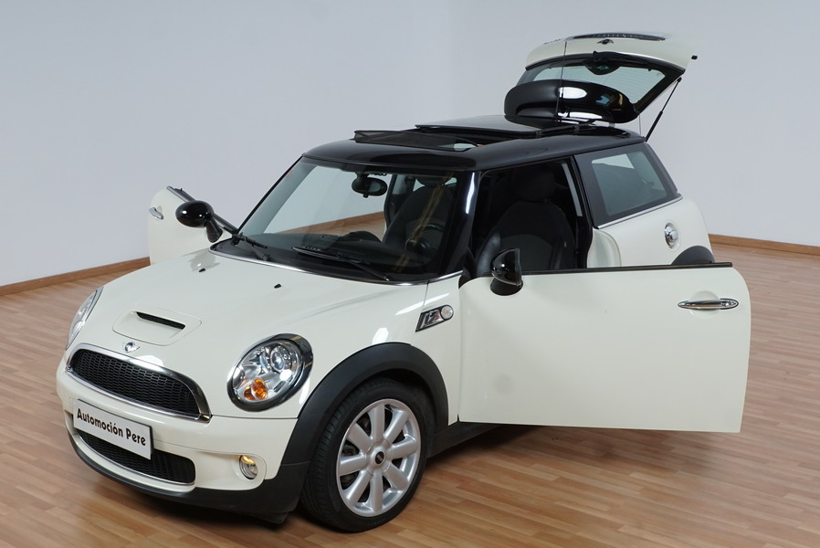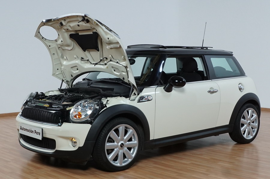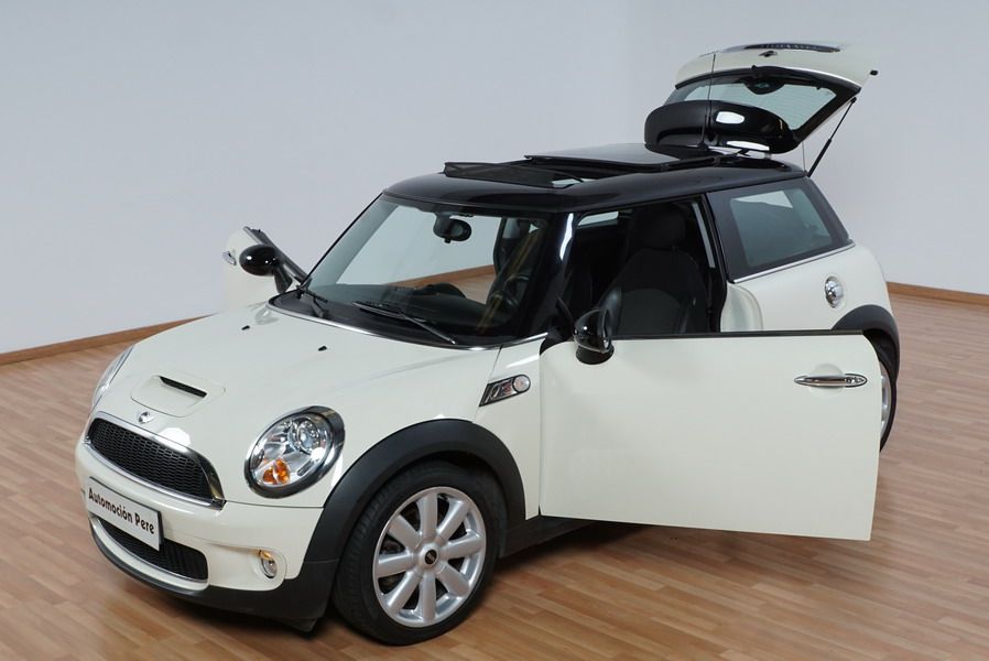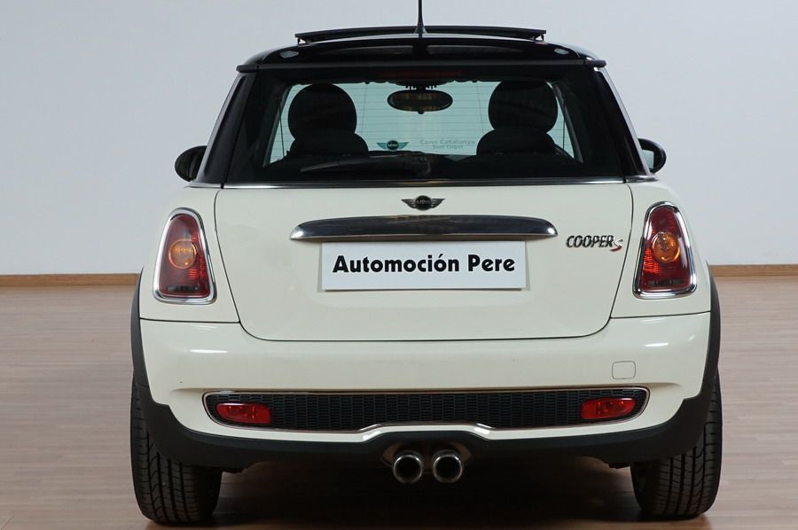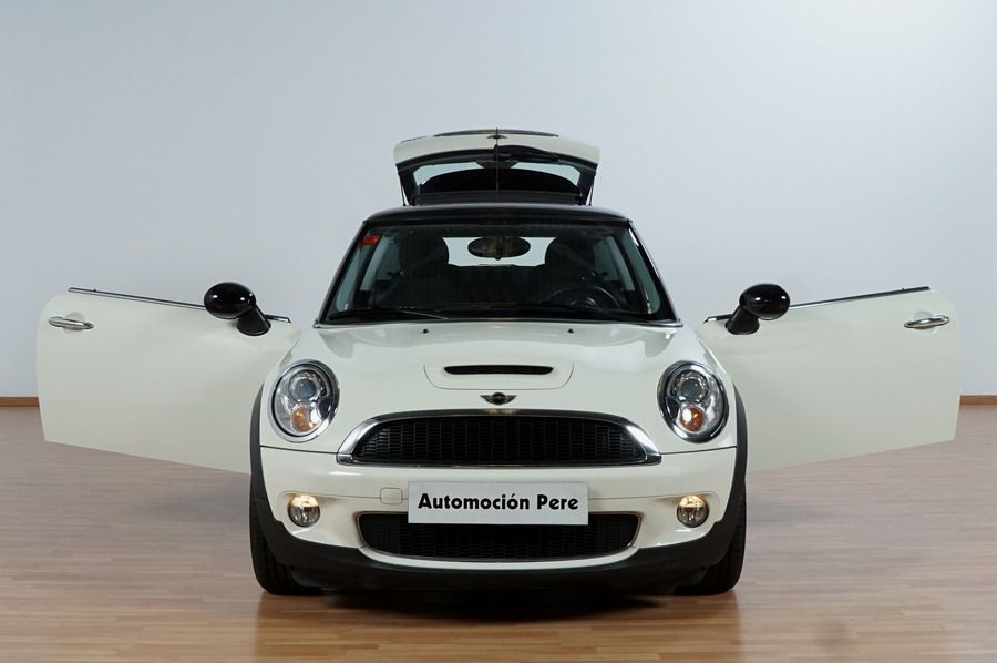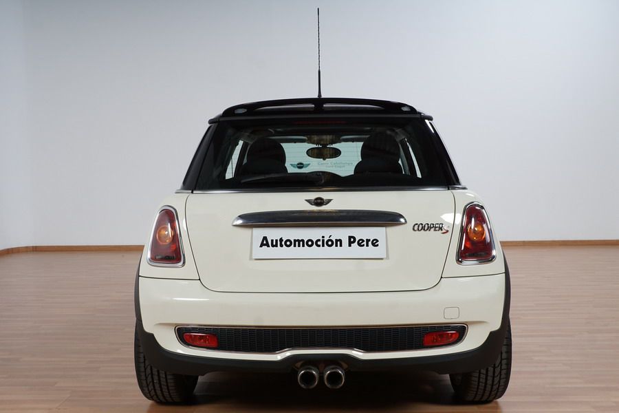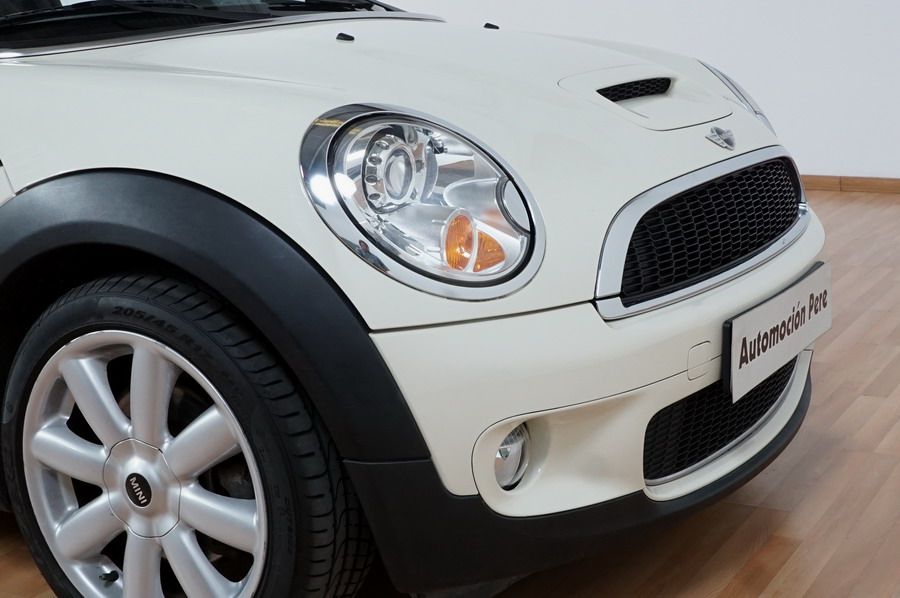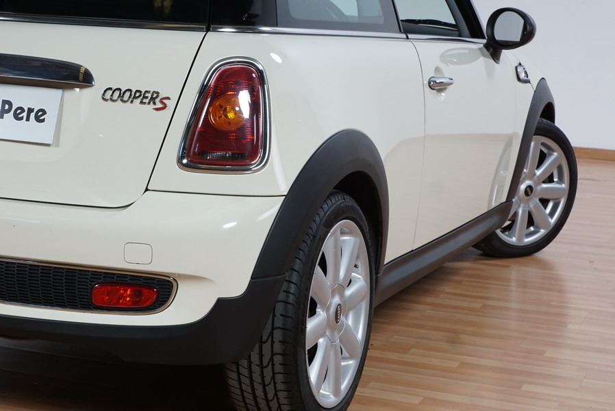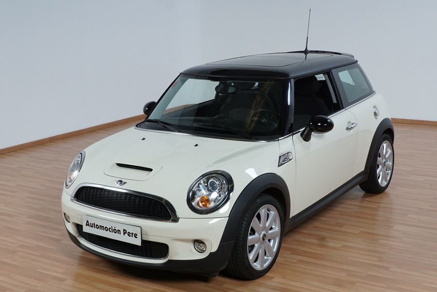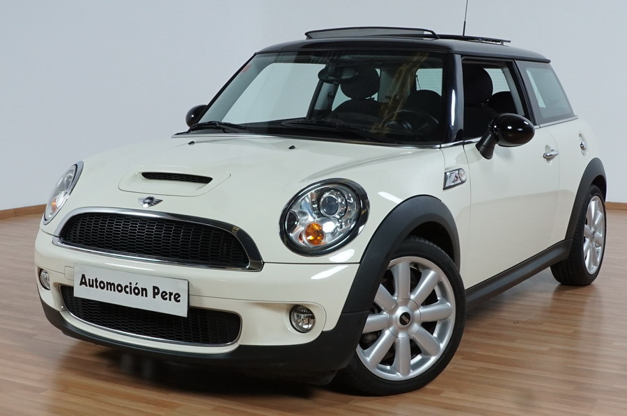 Mini Cooper S 1.6i 175 CV 6 Vel. Año 06/2007. Color Blanco. Climatizador, ABS, ESP, 8 Airbags, Techo Solar Panorámico, Faros Bi-Xenon, Asientos de Deportivos de Cuero/Tela, Ordenador de Viaje, Alarma, Llantas 18", Elevalunas Eléctricos, Cierre Centralizado con Mando, Radio-CD, Rerovisores Eléctricos, Faros Antiniebla, Dirección Asistida, Muy Buen Estado y Pocos Kms.