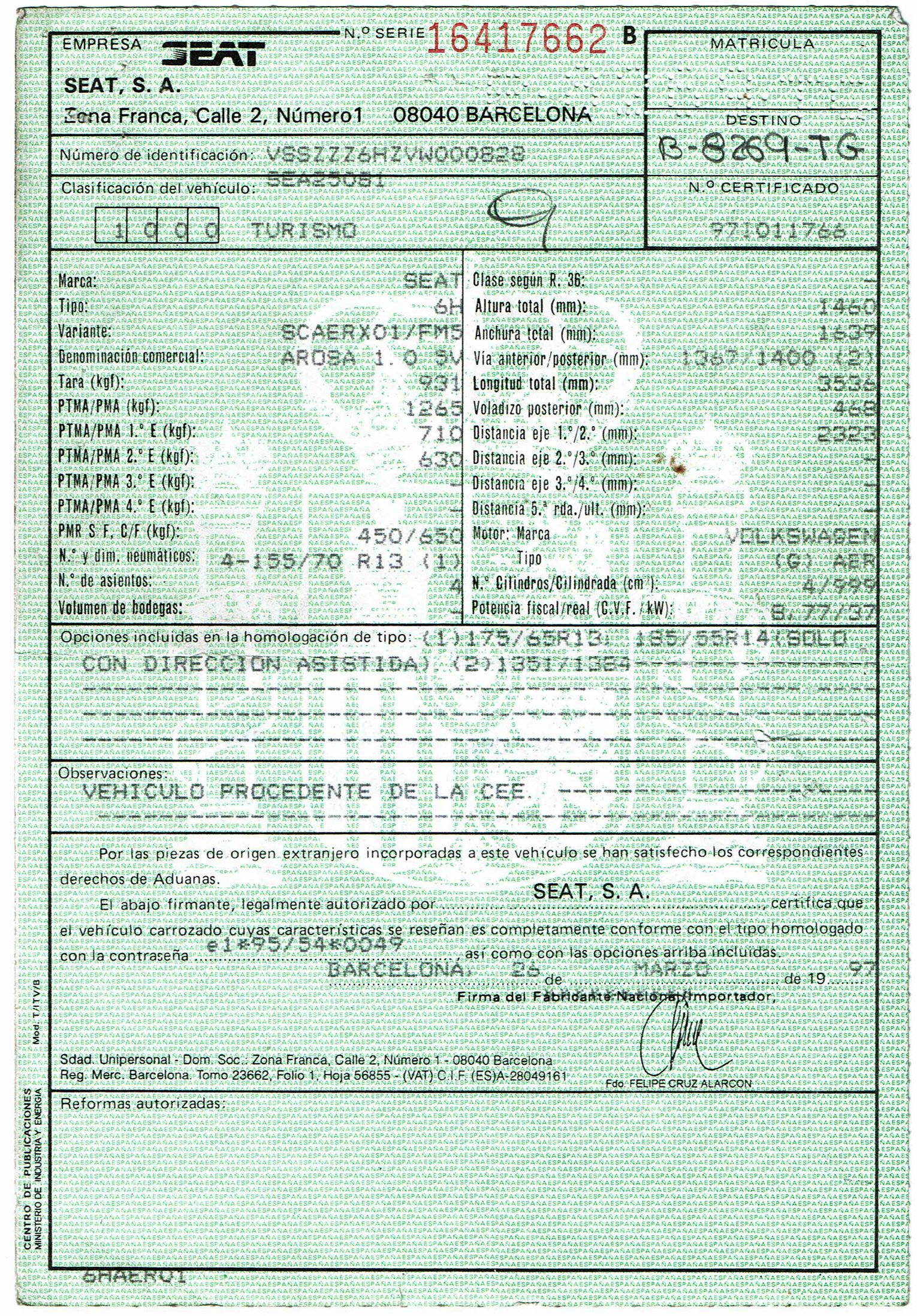 - Emisiones de CO2:139 g/Km (Seat)