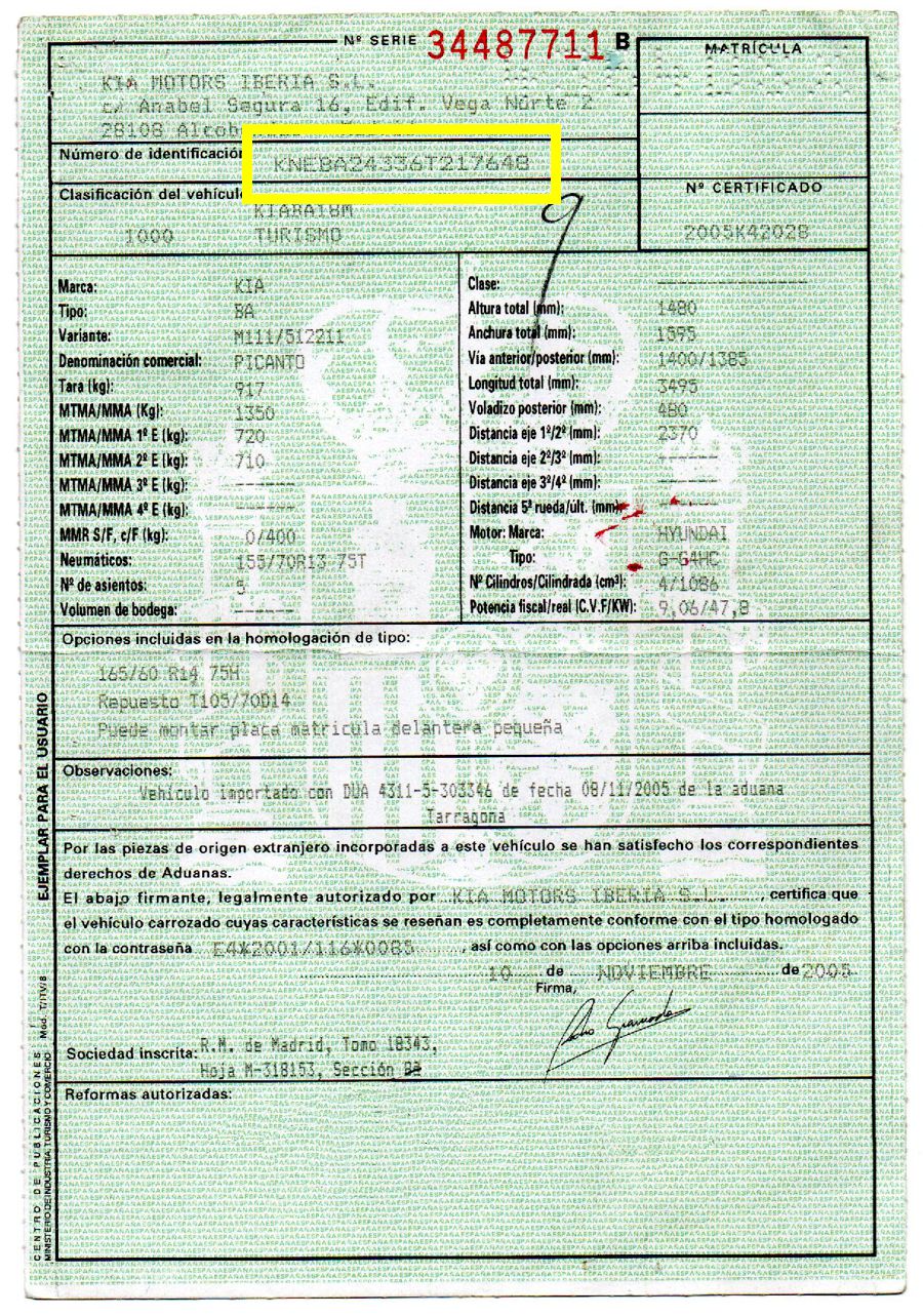 Se Facilita Matricula y Numero de Bastidor para Consultas en la DGT o CARFAX.