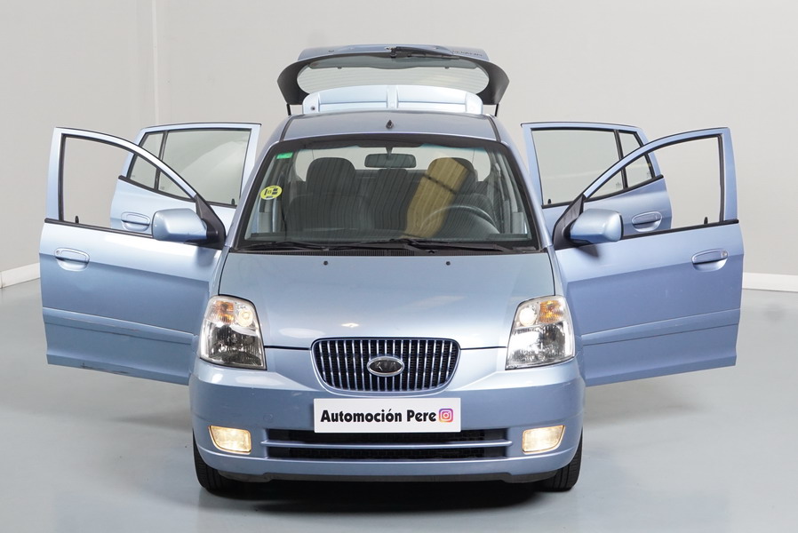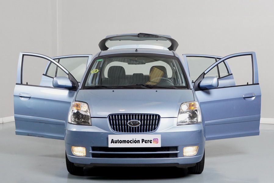 Kia Picanto 1.1i EX Automático 65 CV. 5 Puertas. Color Azul Metalizado. Aire Acondicionado, Doble Airbag, ABS, Dirección Asistida, Volante de Cuero regulable en altura, Radio/USB, 4 Elevalunas Eléctricos, Cierre Centralizado con Mando, Retrovisores Eléctricos. Muy Buen Estado Pocos Kms.