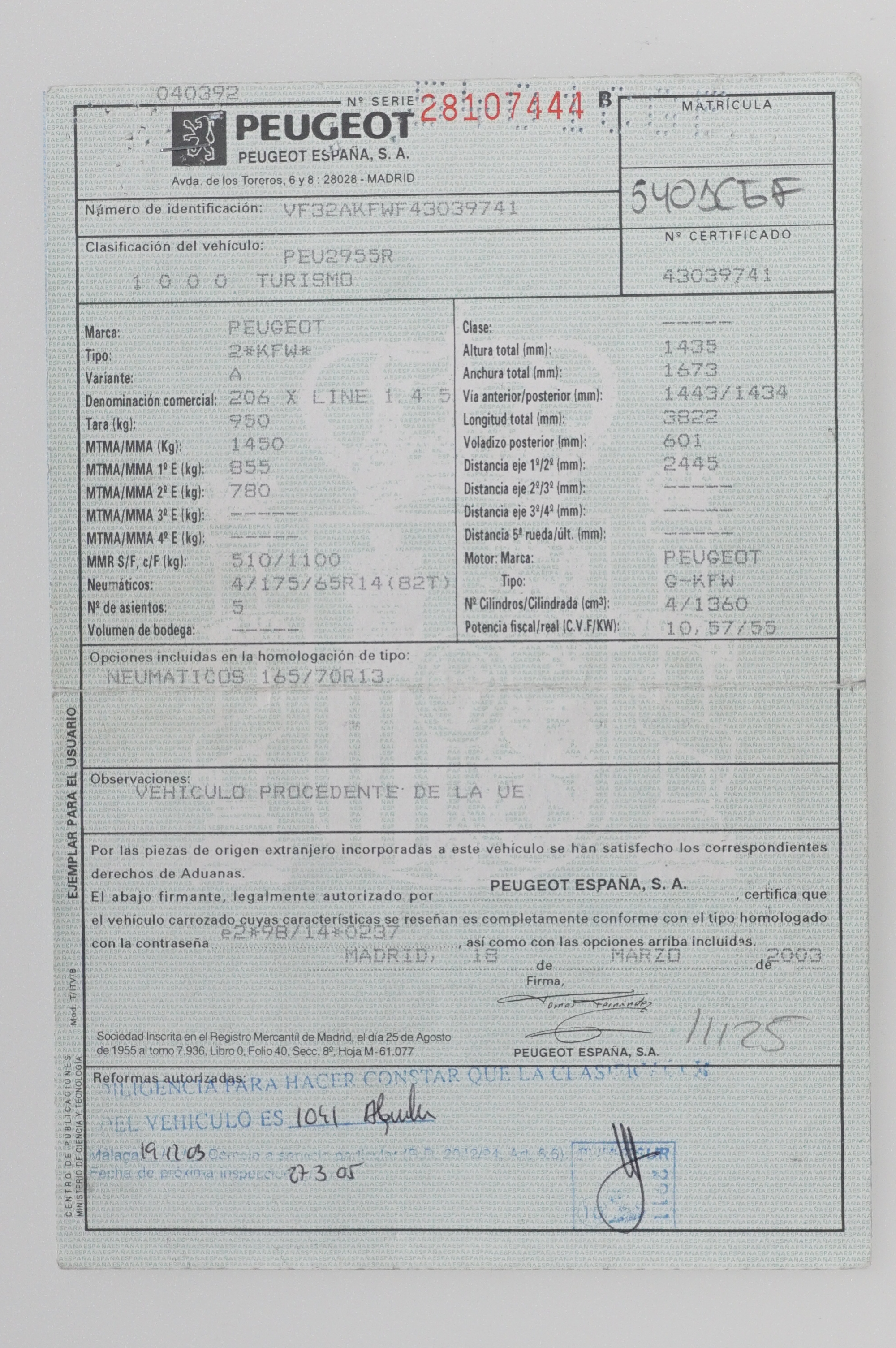 Peugeot 206 1.4i 75 CV X-Line 5 Puertas. Año 03/2003. Color Gris Plata Metalizado, Aire Acondicionado, Radio-CD con Mandos en el Volante, Elevalunas Eléctricos, Cierre Centralizado con Mando. Muy Buen Estado y Pocos Kms.