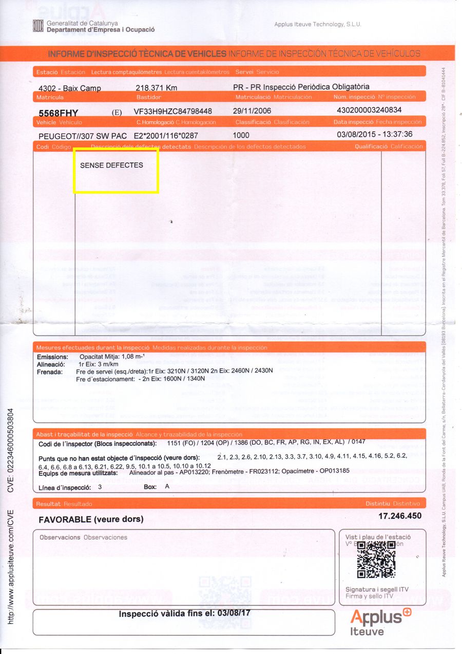 ITV OK. KMS Sellados en Cada Revisión (Kilometros Garantizados)