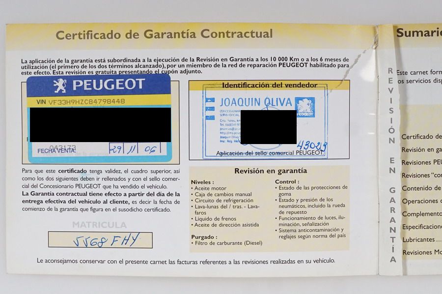 Revisiones hechas en Servicio Oficial Peugeot con Libro Sellado y en Taller de Confianza