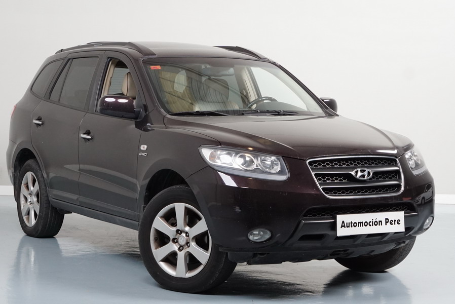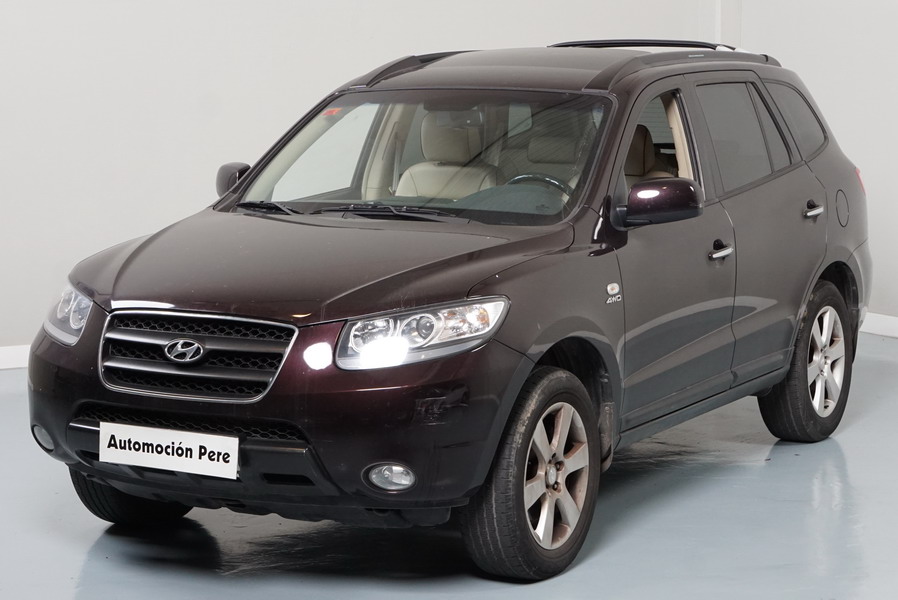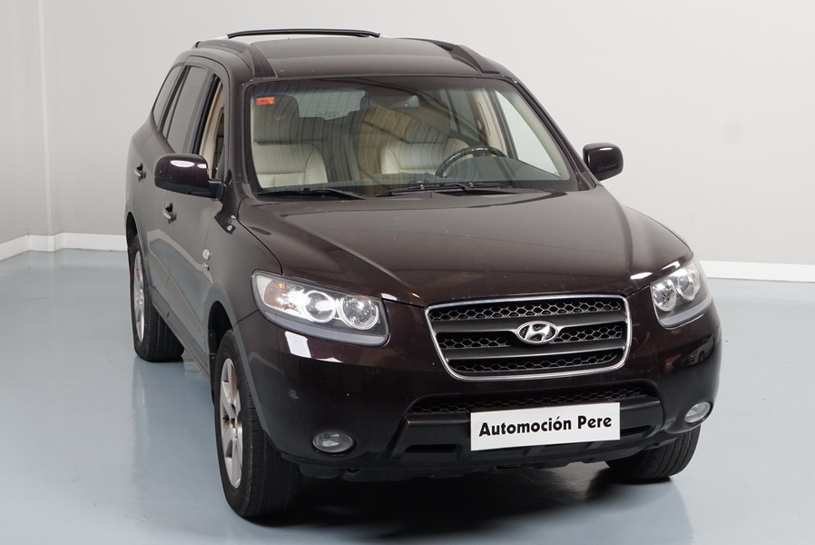 Hyundai Santa Fe V6 Style 4x4 190 CV Automático/Sec. Año 03/01/2008. Color Burdeos Metalizado. Climatizador Bi-Zona, ABS, ESP, 10 Airbags, Techo Solar Eléctrico, Asientos de Cuero Beige Eléctricos y con Calefacción , Sensor de Parking trasero, Ordenador de Viaje, Volante de Cuero Multifuncional Regulable en altura, Cierre Centralizado con Mando, 4 Elevalunas Eléctricos, Retrovisores Retractiles, Radio/CD, Sistema de Navegación GPS Original Hyundai, Cristales Tintados Originales, Llantas 17", Faros Antiniebla, Apoyabrazos Centrales Delantero y Trasero.