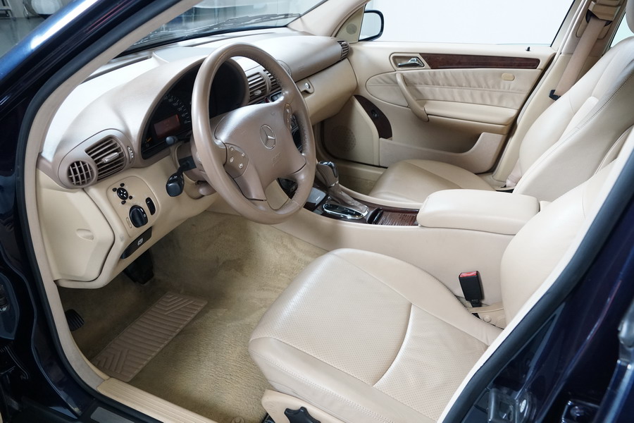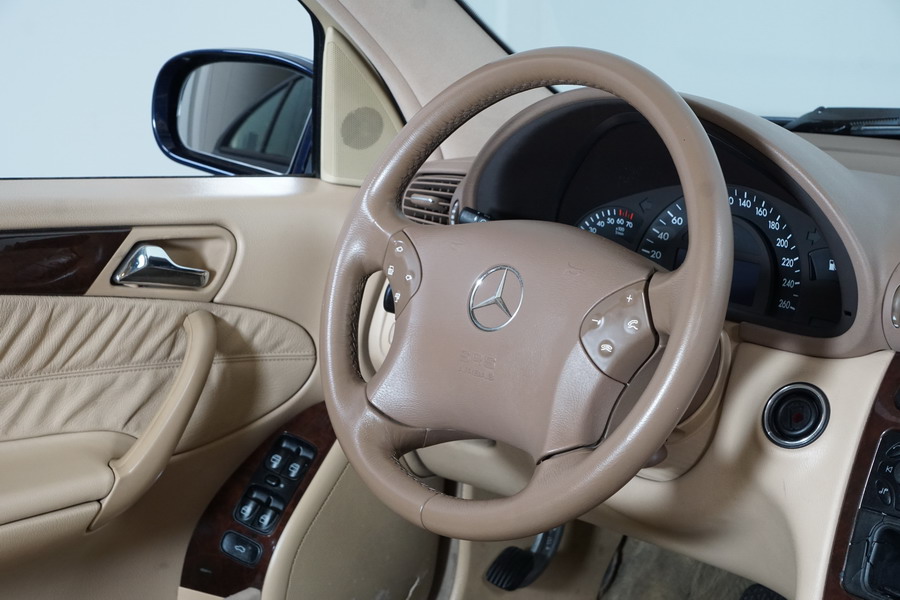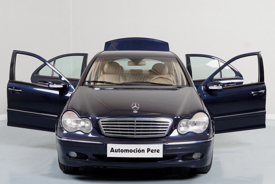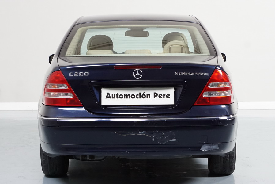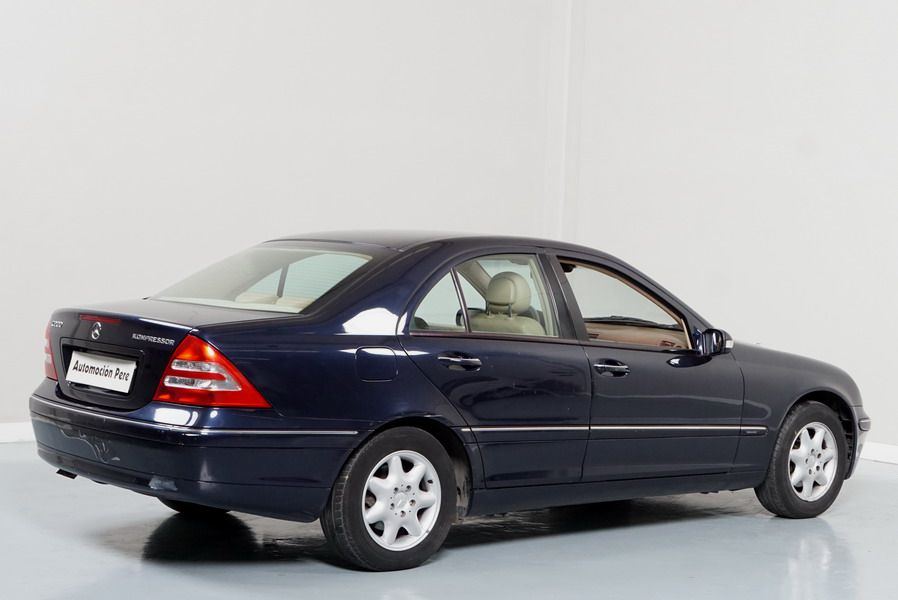Mercedes Benz C200 Kompressor Elegance 163 CV automático/Secuencial. Año 12/01/2001. Color Azul Marino Metalizado, Climatizador, ABS, ESP, 6 Airbags, Asientos de Cuero Beige, 4 Elevalunas Eléctricos, Cierre Centralizado con Mando, Radio/CD, Dirección Asistida, Apoyabrazos Centrales Delantero y Trasero, Llantas, Faros Antiniebla, Ordenador de Viaje, Volante de Cuero Multifuncional, Muy Buen Estado.