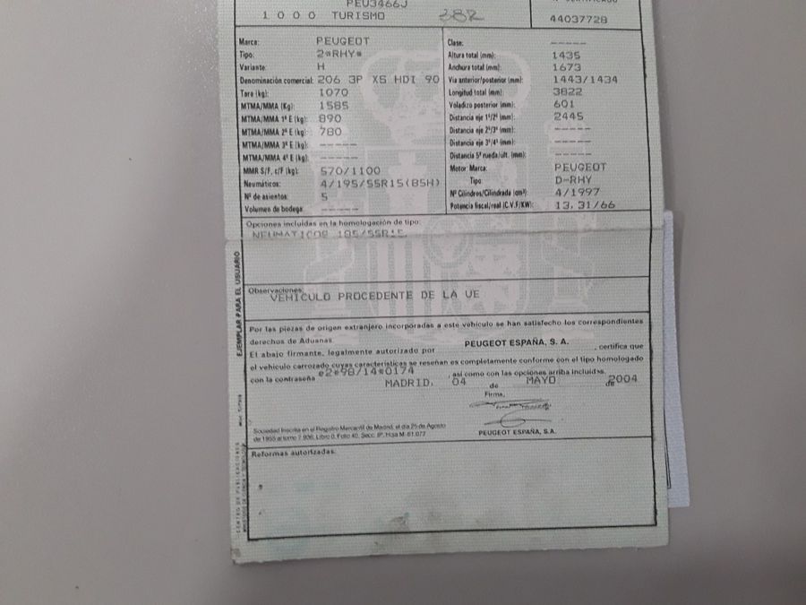 Peugeot 206 2.0 HDi 90 CV XS. 3 Puertas. Año 23/05/2004. Color Negro Metalizado, Climatizador, ABS, Asientos Deportivos, Elevalunas Eléctricos, Cierre Centralizado, Radio/CD, Faros Antiniebla, Llantas, Dirección Asistida, Volante de Cuero Regulable.