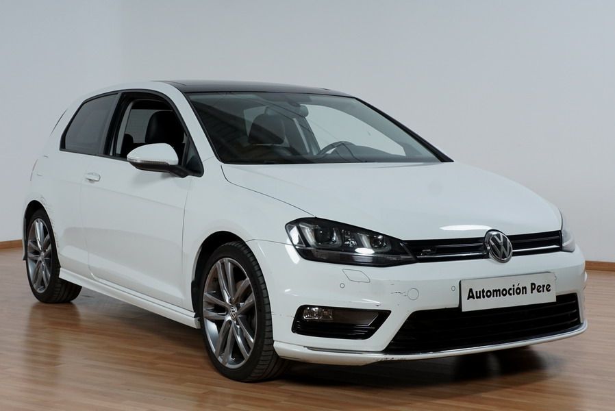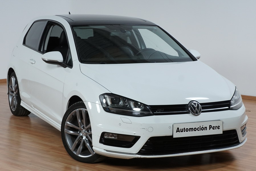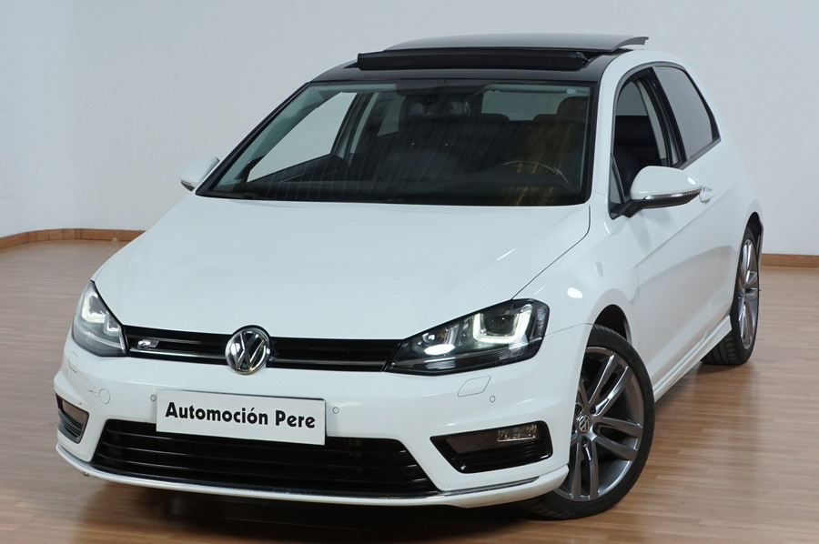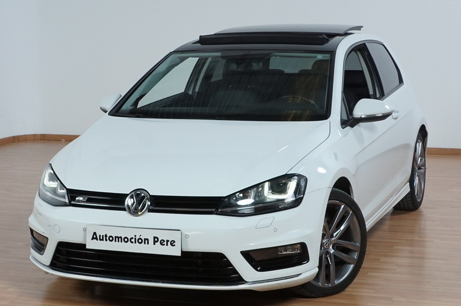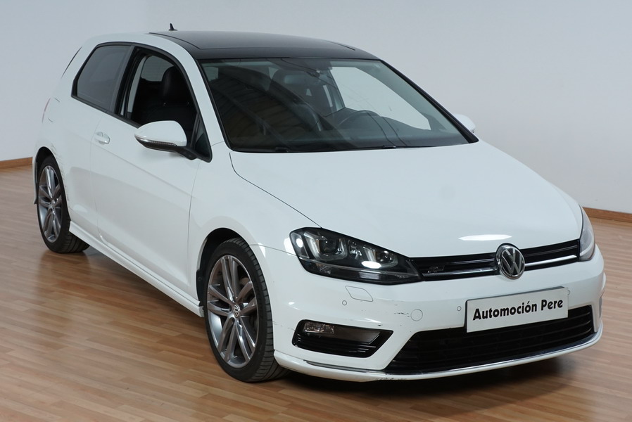 Volkswagen Golf VII 2.0 TDi R-Line 150 CV 6 Velocidades. Año 08/2013. Color Blanco, 3 Puertas. Climatizador Bi-Zona, ABS, ESP, Techo Solar Panoramico, Alarma, Luces Led Direccionales Paquete R-LINE interior y exterior
