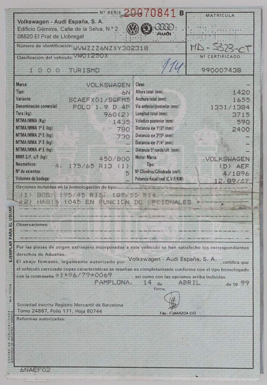 Volkswagen Polo 1.9 SDi Trendline 64 CV 5 Puertas. Color Azul Marino Metalizado. Año 05/99. Aire Acondicionado, Airbag, Dirección Asistida, Elevalunas Eléctricos, Cierre Centralizado, Radio-CD. Muy Buen Estado y Pocos Kms.