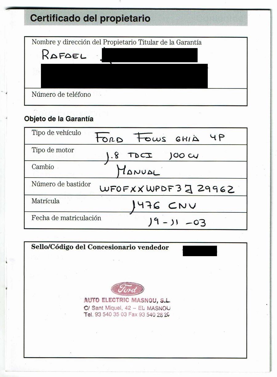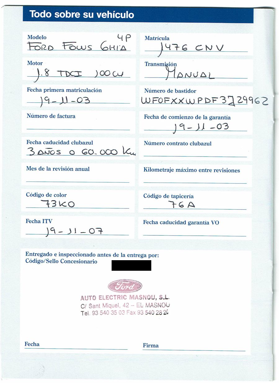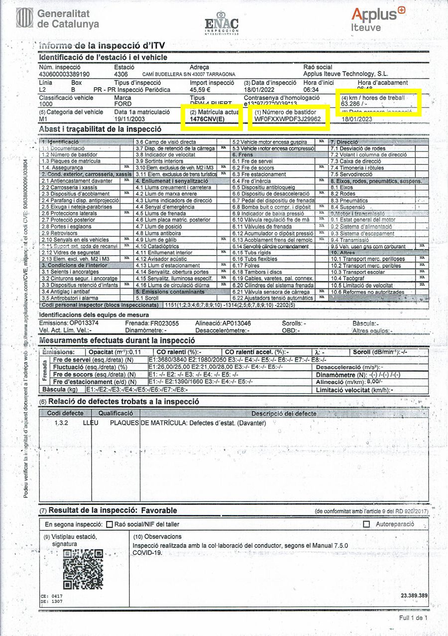 Se Facilita Matricula y Numero de Bastidor para Consultas en la DGT o CARFAX.