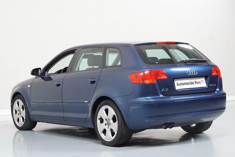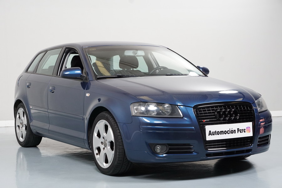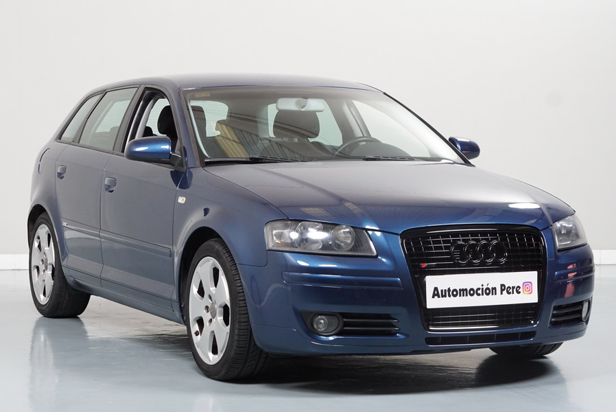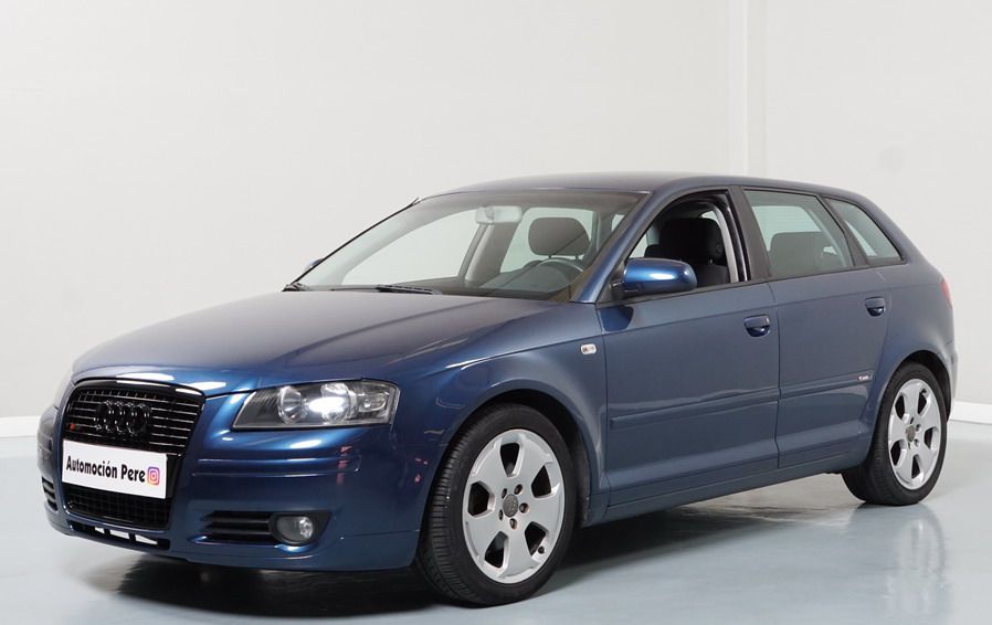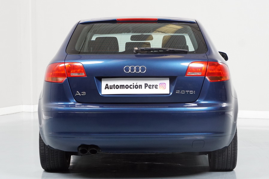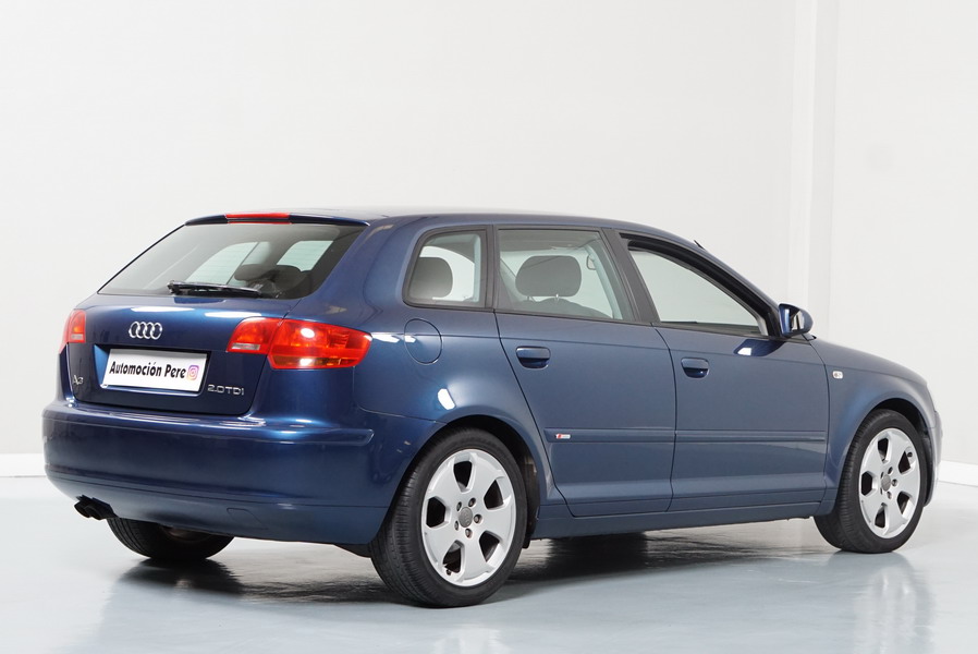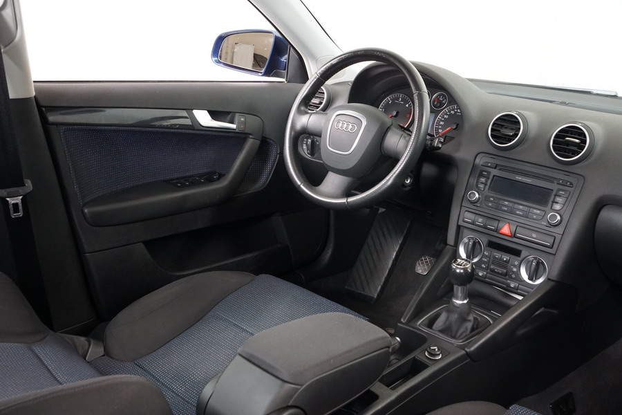 Audi A3 2.0 TDi 140 CV 6 Vel Ambitión SportBack. Año 10/12/2007. Color Azul Metalizado, 5 Puertas. Climatizador Bi-Zona, ABS, ESP, 8 Airbags, 4 Elevalunas Eléctricos, Cierre Centralizado con Mando, Radio/CD+MP3 Original Audi, Apoyabrazos Central Delantero, Ordenador de Viaje, Volante de Cuero, Llantas 17", Faros Antiniebla. Muy Buen Estado. Pocos Kms.