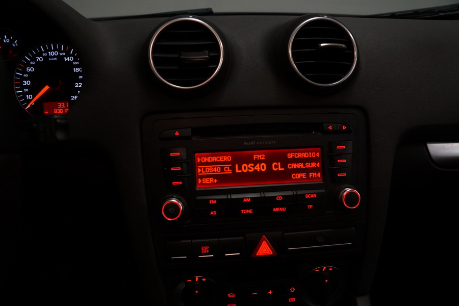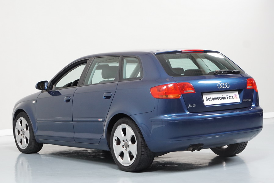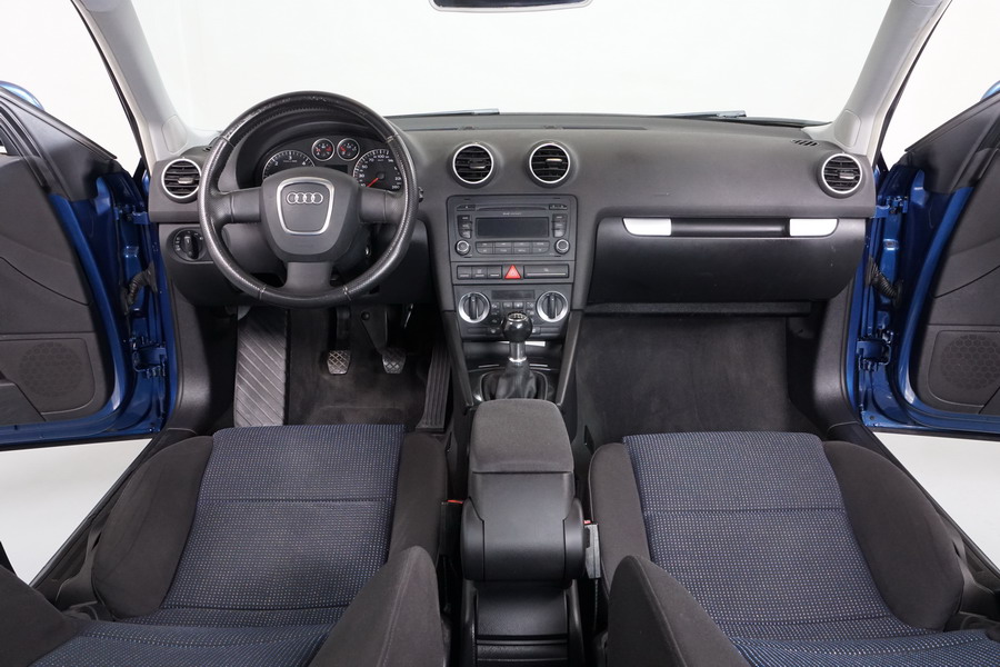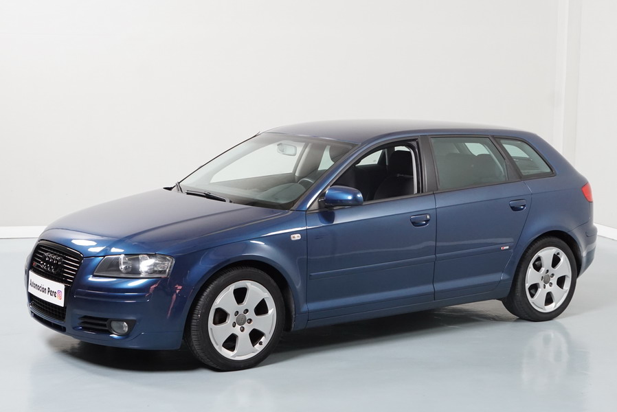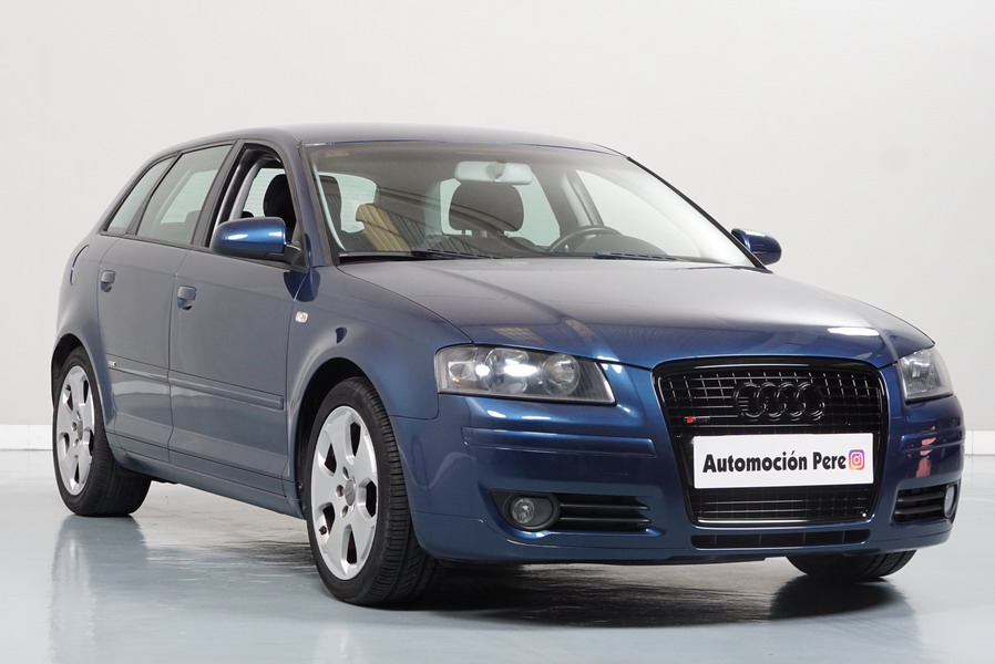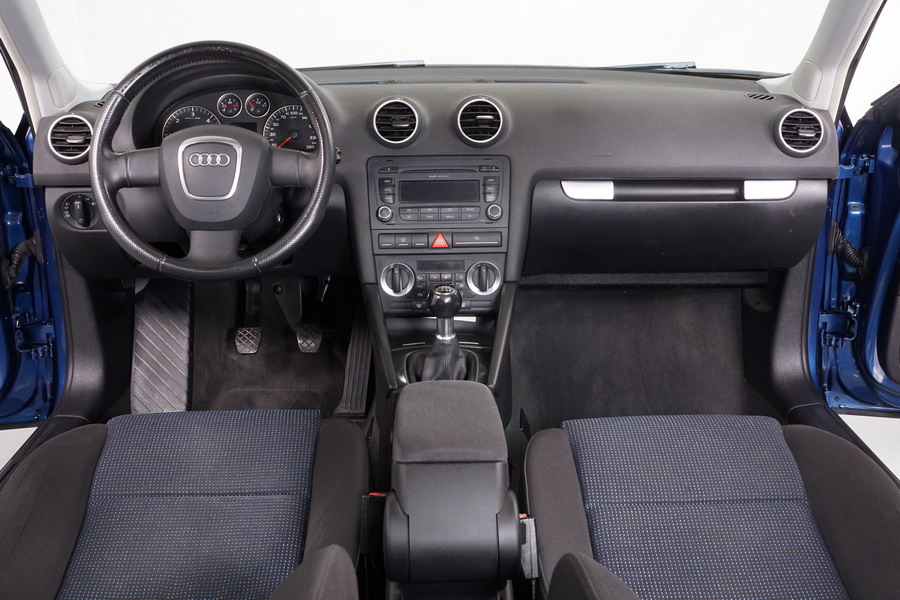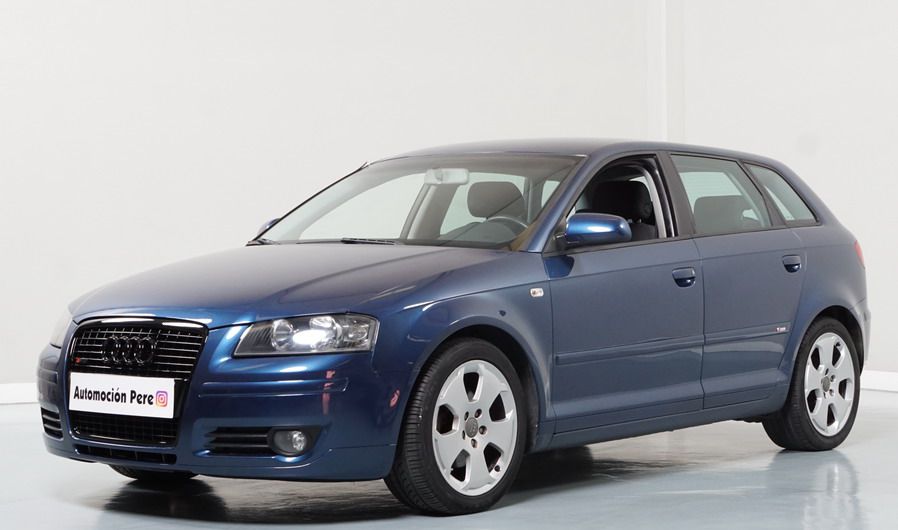 Audi A3 2.0 TDi 140 CV 6 Vel Ambitión SportBack. Año 10/12/2007. Color Azul Metalizado, 5 Puertas. Climatizador Bi-Zona, ABS, ESP, 8 Airbags, 4 Elevalunas Eléctricos, Cierre Centralizado con Mando, Radio/CD+MP3 Original Audi, Apoyabrazos Central Delantero, Ordenador de Viaje, Volante de Cuero, Llantas 17", Faros Antiniebla. Muy Buen Estado. Pocos Kms.