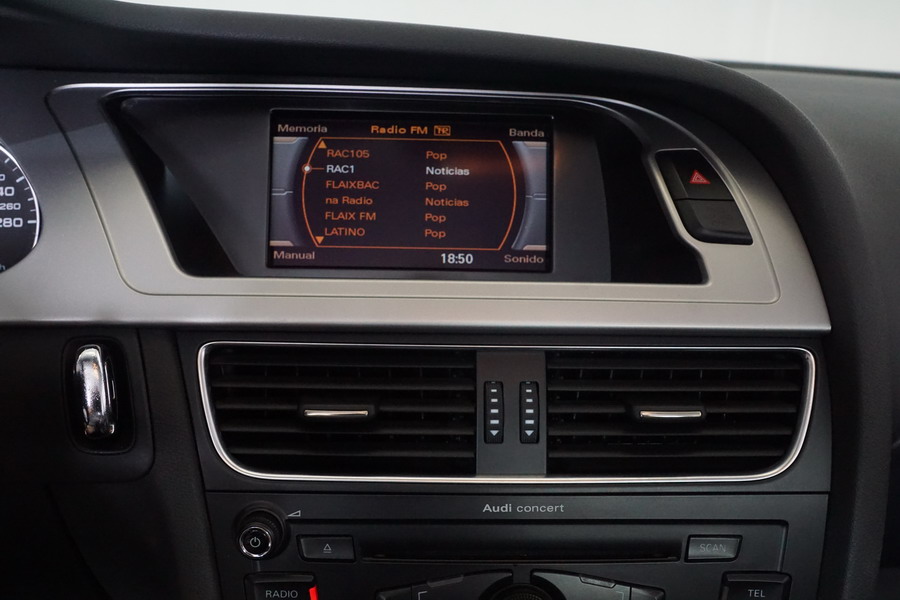 Audi A4 2.0 TDi 136 CV 6 Velocidades. Gris Delfín Metalizado. Climatizador Bi-Zona, ABS, ESP, 8 Airbags, Start/Stop, Llantas 16", Faros Bi-Xenón, Luces Diurnas y de Antiniebla, Volante de Cuero Mutlfuncional Regulable en Altura, Radio/CD+SD+Aux, Bluetooth, Apoyabrazos Centrales Delantero y Trasero, 4 Elevalunas Eléctricos, Cierre Centralizado con Mando, Retrovisores Eléctricos, Alarma, Ordenador de Viaje, Control y Limitador de Velocidad, Sensor de Parking Trasero. Muy Buen Estado y Pocos Kms.
