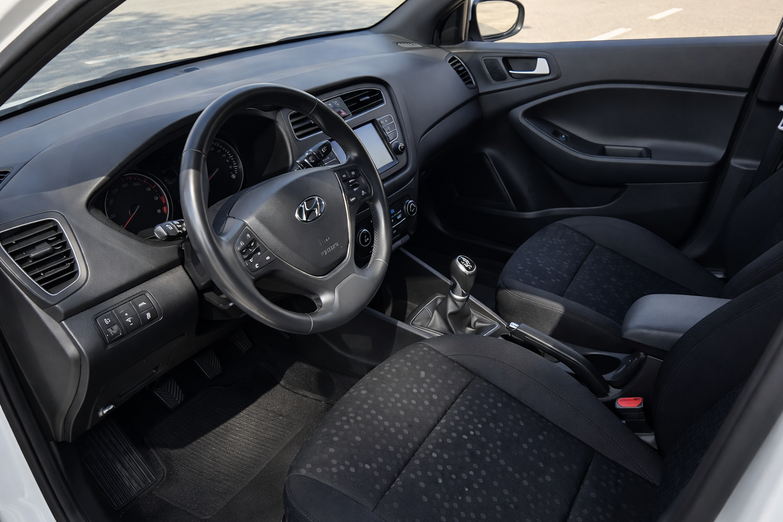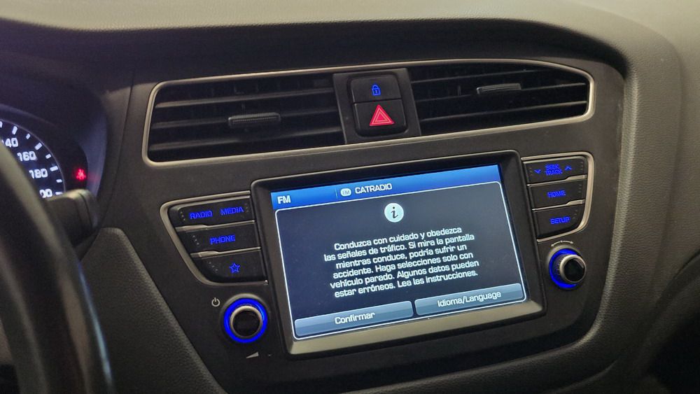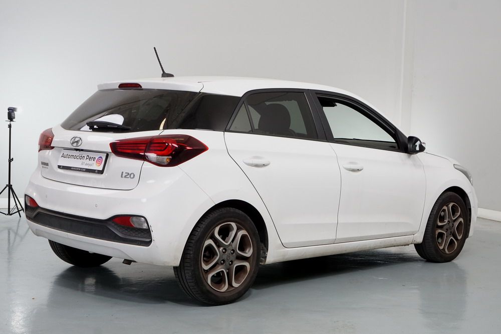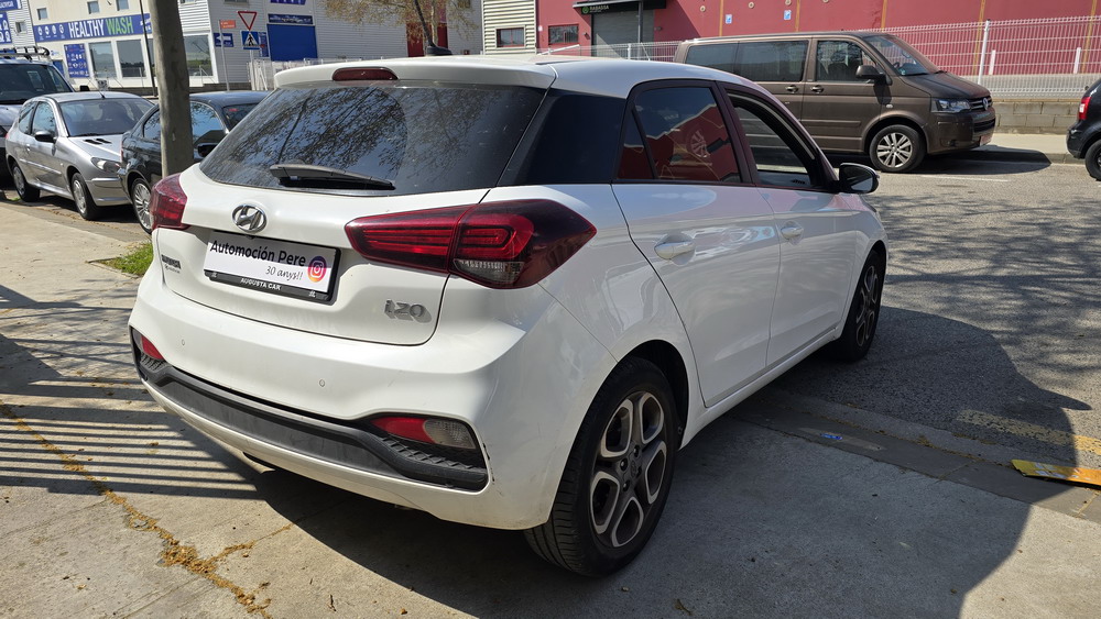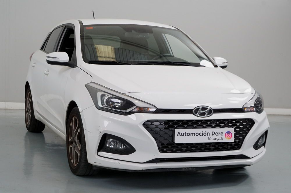 Hyundai i20 1.0 T-GDi 100 CV. Año 26/03/2019. Color Blanco. 5 Puertas. Climatizador, Android Auto y Apple CarPlay, 6 altavoces , Conexión AUX, Conexión Bluetooth para teléfono móvil, Conexión USB, Navegador, Pantalla táctil a color de 17,8 cm (7"), Radio, Kit antipinchazos, Elevalunas eléctricos delanteros y Traseros, Retrovisores Eléctricos y Plegables, Sensor de Luces y de Lluvia, Camara Trasera con Doble Sensor de Parking, Dirección Asistida, Ordenador de Viaje, Control y Limitador de Velocidad "Tempomat", Volante de Cuero regulable Multifuncional, Faros Led Diurnos, Faros Antiniebla, Cierre Centralizado con Mando a Distancia (2 Llaves), Parada y arranque automático del motor Stop & Go, Reposabrazos central delantero con caja portaobjetos, Retrovisores exteriores plegables eléctricamente, Toma de corriente auxiliar, Manetas exteriores color carrocería, Parrilla Dark Grey, Pintura Polar White, Tapicería de tela con costuras en contraste, Volante y pomo de cambio de cuero, Asiento trasero abatible 60/40, Guantera iluminada y Refrigerada, Maletero con iluminación, Portagafas retráctil, Posavasos delanteros, Llantas de aleación 41 cm (195/55 R16), Alarma antirrobo, Lunas traseras sobretintadas, Luz de lectura delantera, Asistente de arranque en cuesta (HAC), Antibloqueo de frenos (ABS), Alerta de cambio involuntario de carril, Airbags laterales delanteros, Airbags de cabeza delanteros y traseros, Airbag frontal pasajero, Airbag frontal conductor, Anclajes Isofix y Top Tether, Aviso de cinturón no colocado, Cierre de seguridad para niños en puertas traseras, Cinturones de seguridad delanteros regulables en altura, Control de crucero. Muy Equipado.