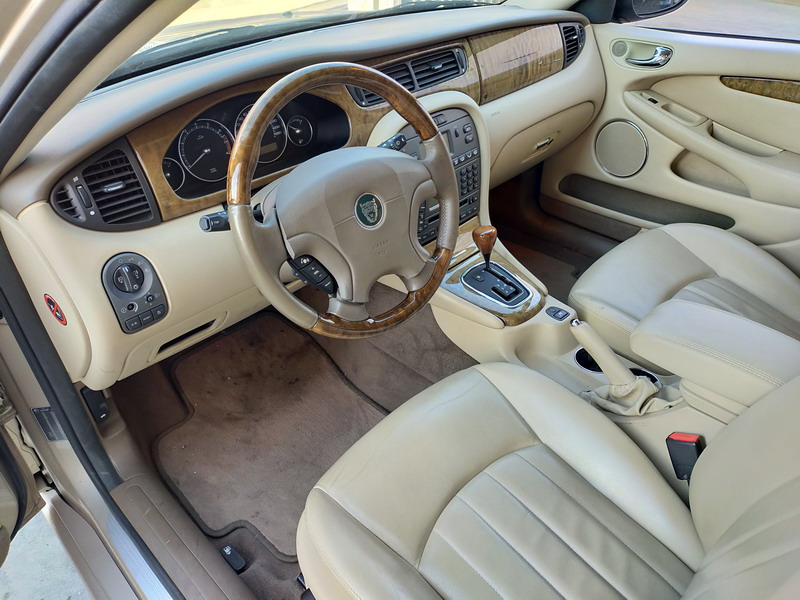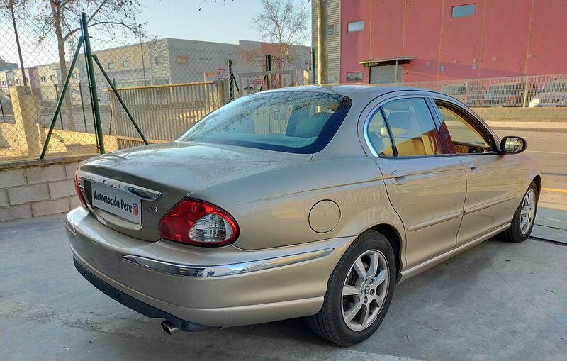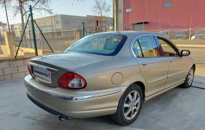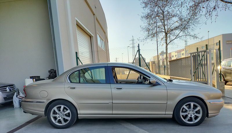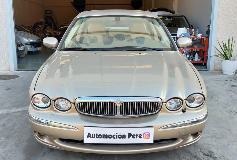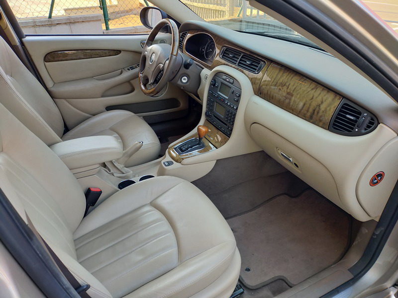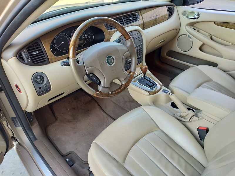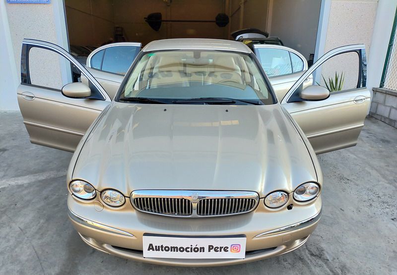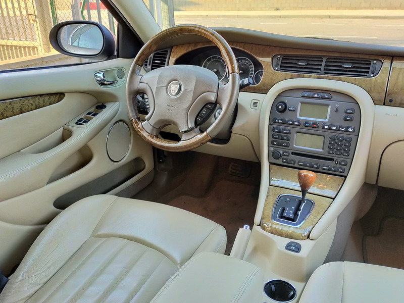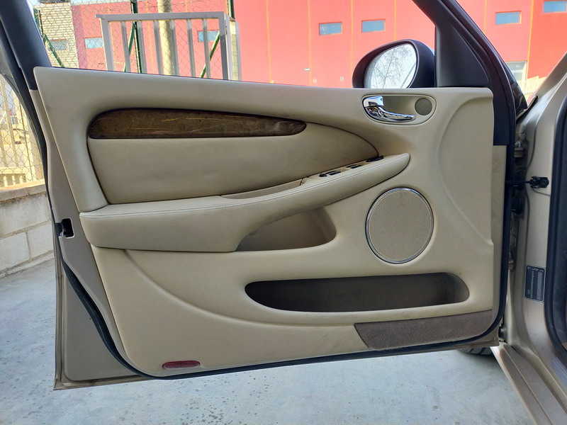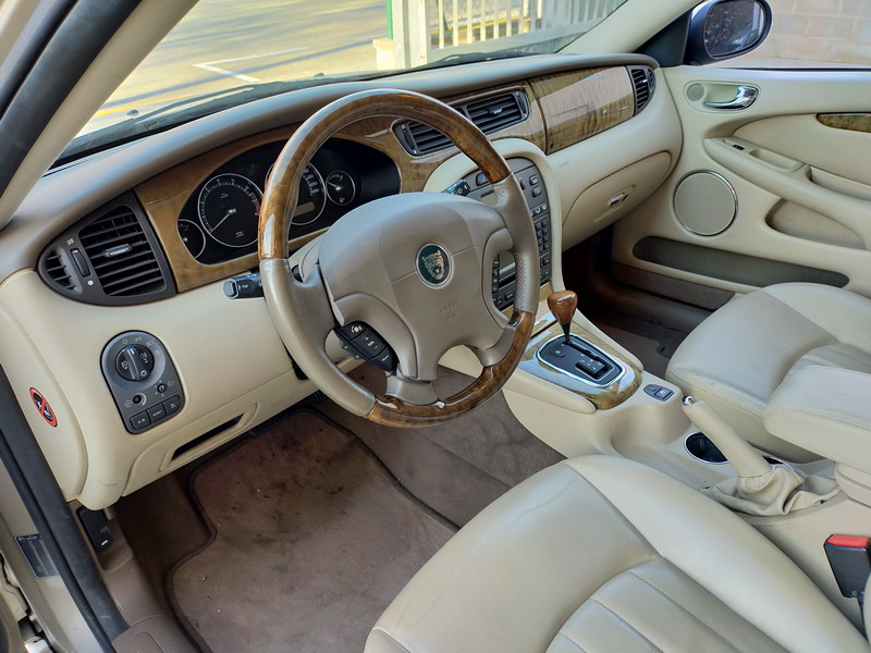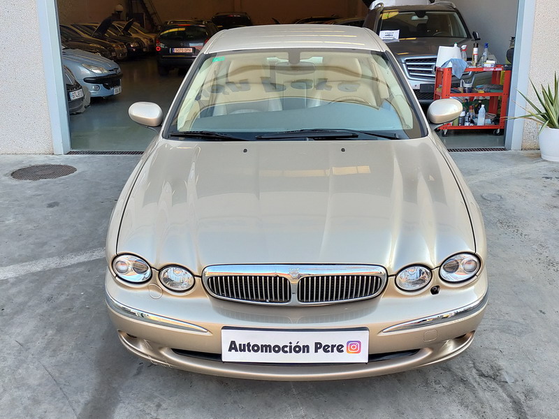 Jaguar X-TYPE 2.5i V6 Executive 195 CV AWD (4x4) Automático. Año 29/09/2003. Color Beige Metalizado. Climatizador, ABS, ESP, 8 Airbags, Asientos de Cuero Beige Eléctricos y con Calefacción, Radio-CD Original Jaguar con Mandos en el Volante, Llantas 16", Volante de Madera y Cuero Multifuncional, Control de Velocidad (Tempomat), Faros Antiniebla, Dirección Asistida, 4 Elevalunas Eléctricos, Cierre Centralizado con Mando, Reposabrazos Centrales, Retrovisores Eléctricos y Retractiles, Alarma Original, Ordenador de Viaje