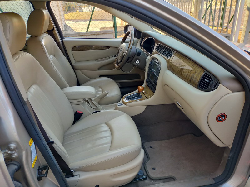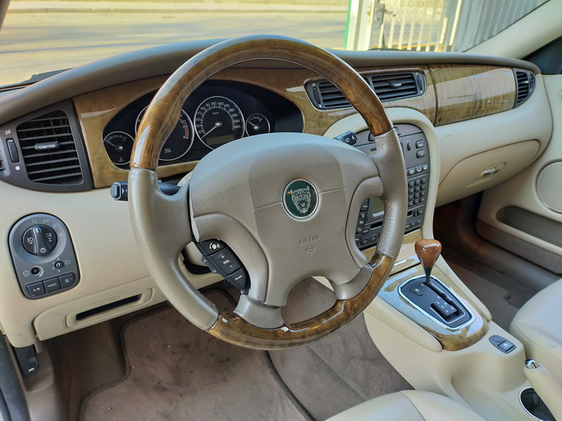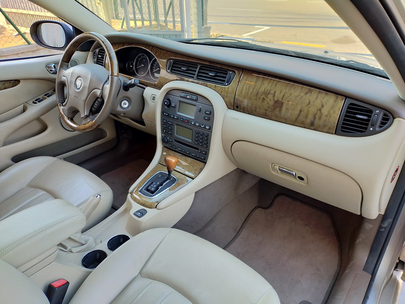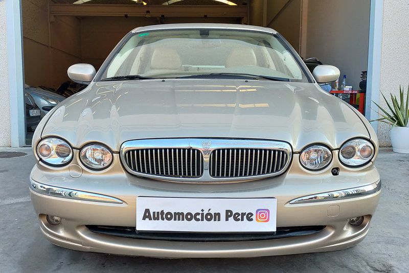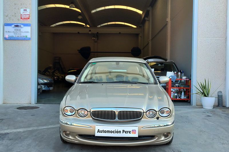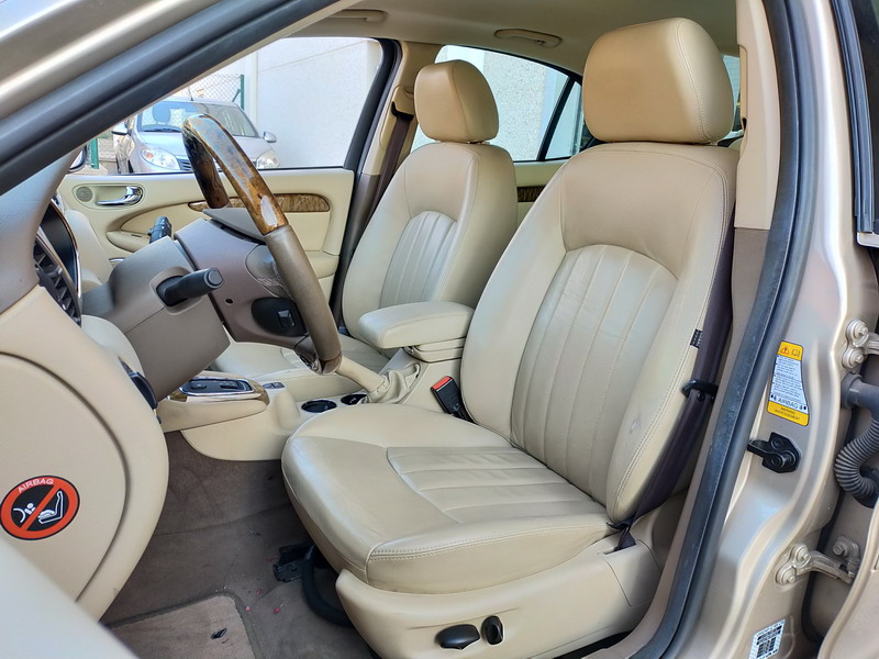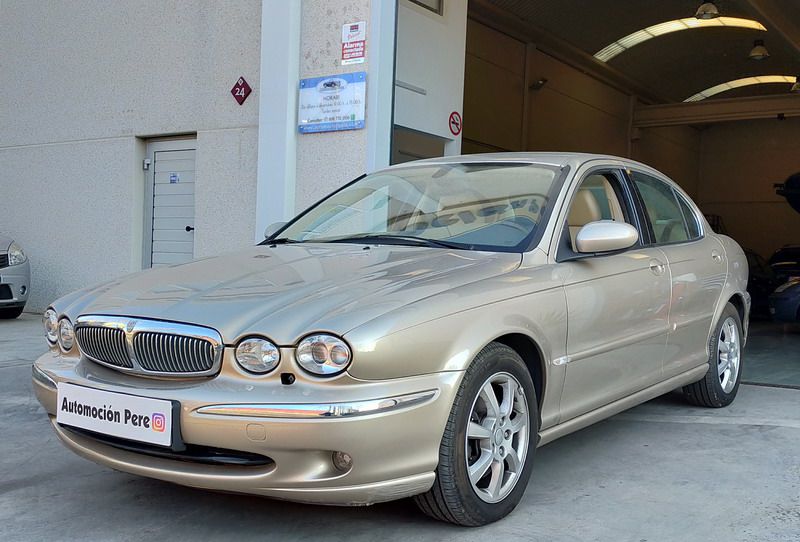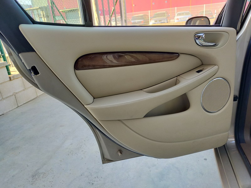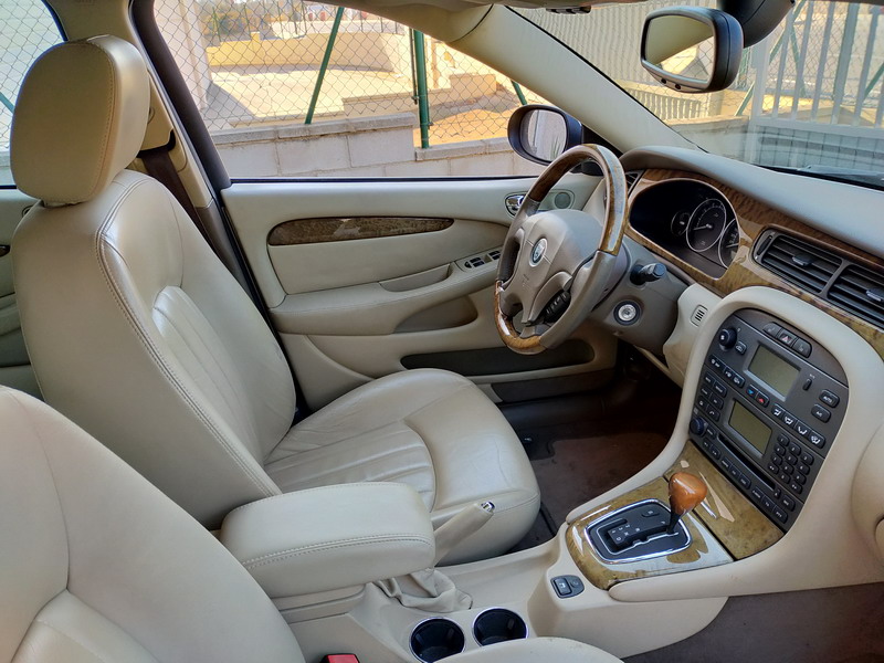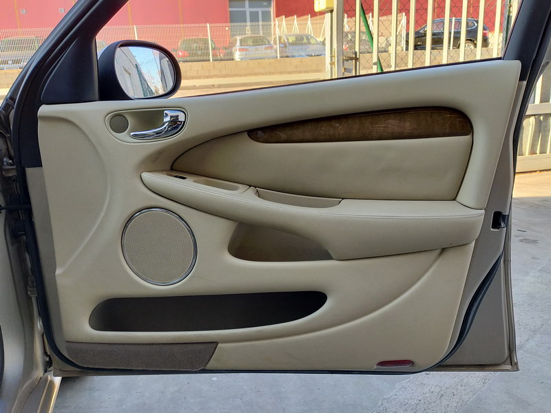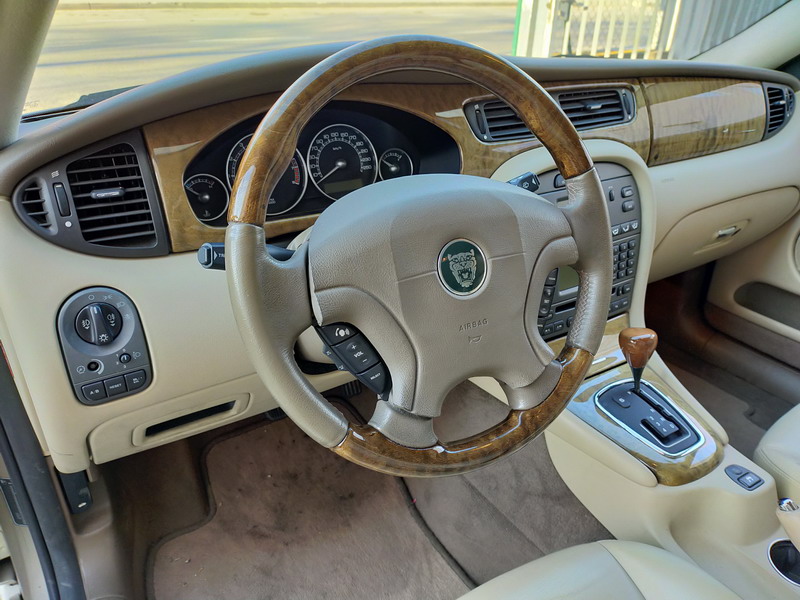 Jaguar X-TYPE 2.5i V6 Executive 195 CV AWD (4x4) Automático. Año 29/09/2003. Color Beige Metalizado. Climatizador, ABS, ESP, 8 Airbags, Asientos de Cuero Beige Eléctricos y con Calefacción, Radio-CD Original Jaguar con Mandos en el Volante, Llantas 16", Volante de Madera y Cuero Multifuncional, Control de Velocidad (Tempomat), Faros Antiniebla, Dirección Asistida, 4 Elevalunas Eléctricos, Cierre Centralizado con Mando, Reposabrazos Centrales, Retrovisores Eléctricos y Retractiles, Alarma Original, Ordenador de Viaje