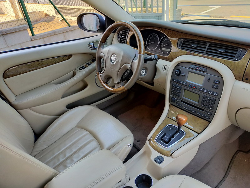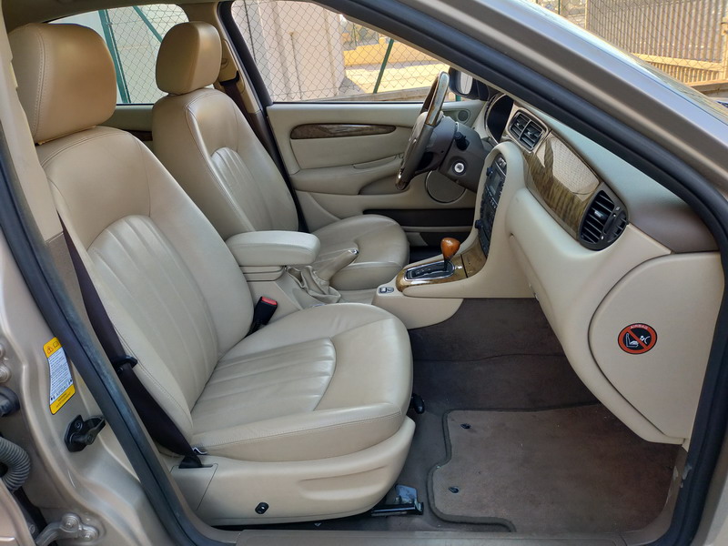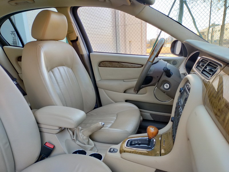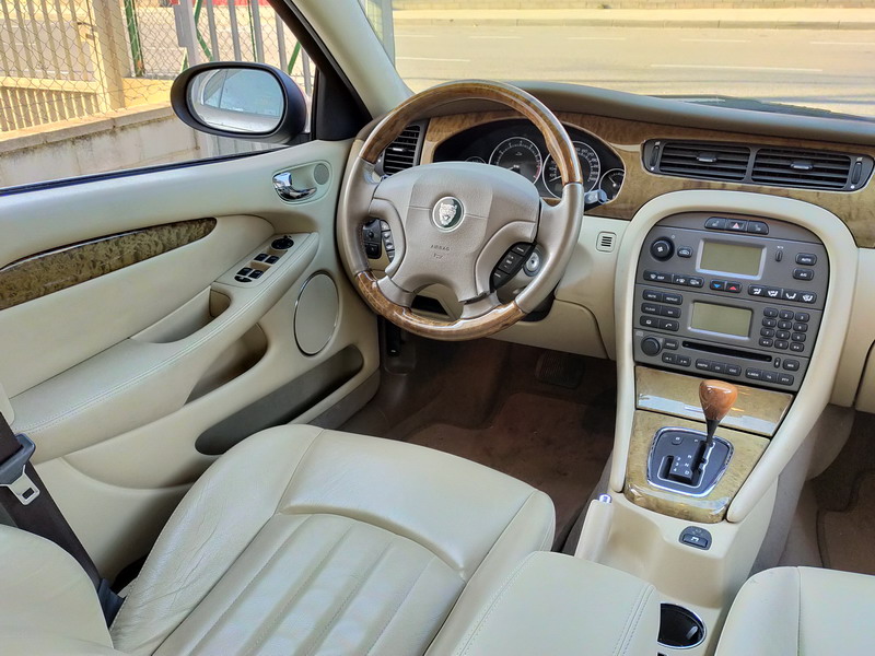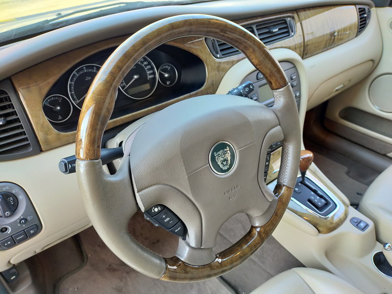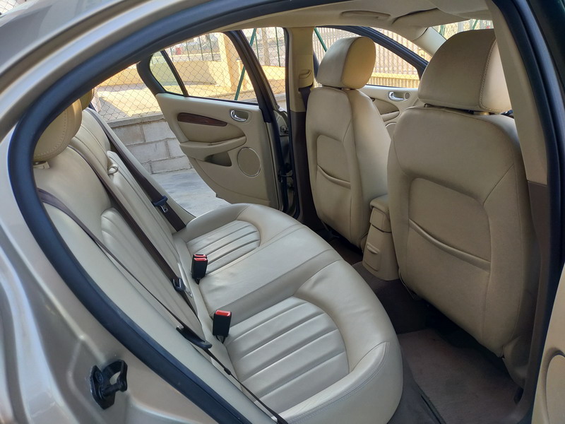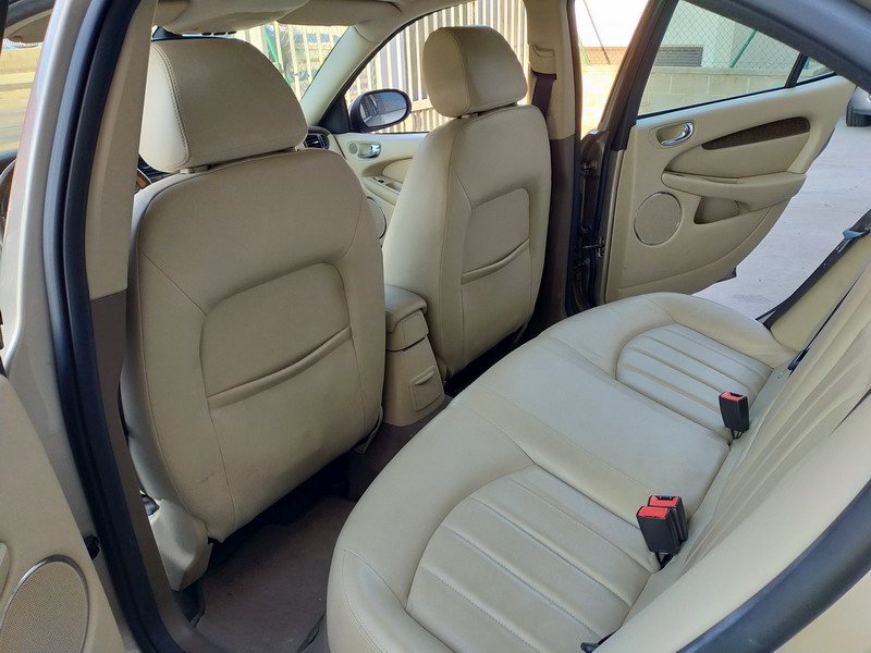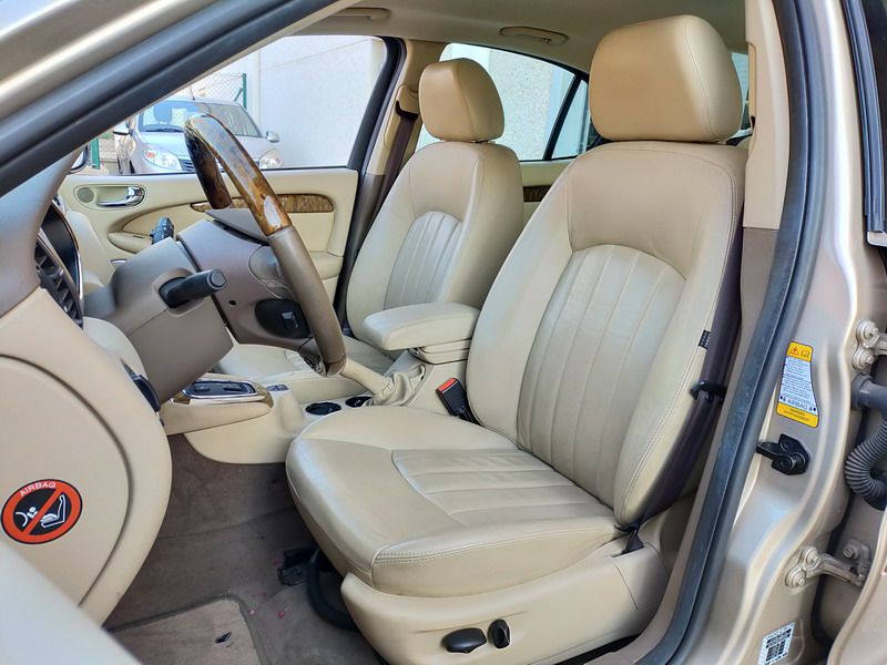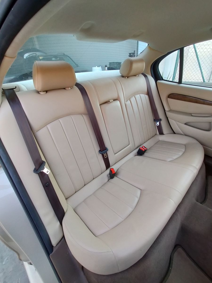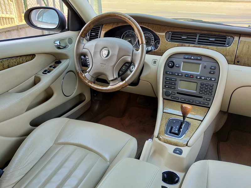 Jaguar X-TYPE 2.5i V6 Executive 195 CV AWD (4x4) Automático. Año 29/09/2003. Color Beige Metalizado. Climatizador, ABS, ESP, 8 Airbags, Asientos de Cuero Beige Eléctricos y con Calefacción, Radio-CD Original Jaguar con Mandos en el Volante, Llantas 16", Volante de Madera y Cuero Multifuncional, Control de Velocidad (Tempomat), Faros Antiniebla, Dirección Asistida, 4 Elevalunas Eléctricos, Cierre Centralizado con Mando, Reposabrazos Centrales, Retrovisores Eléctricos y Retractiles, Alarma Original, Ordenador de Viaje