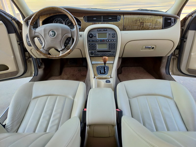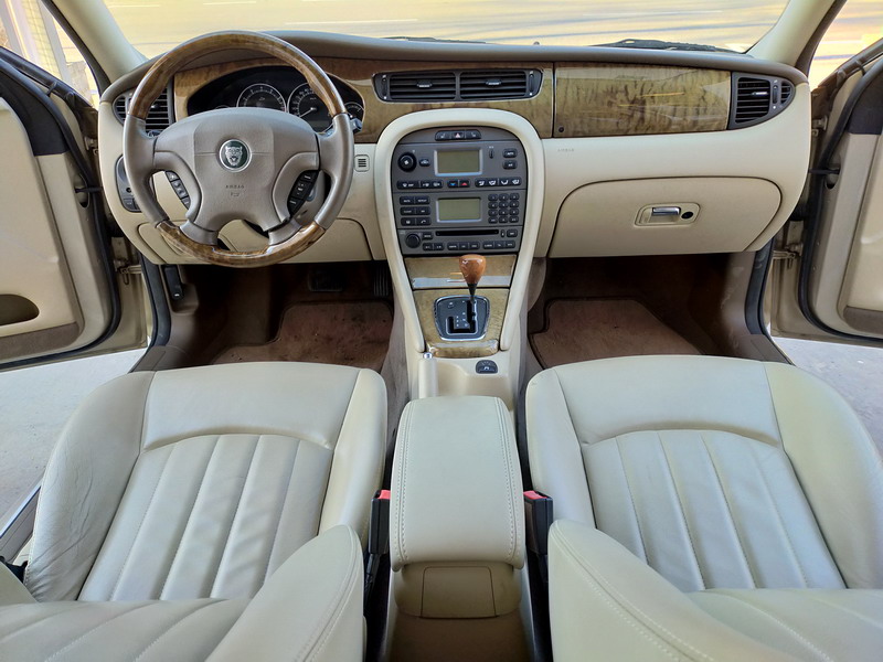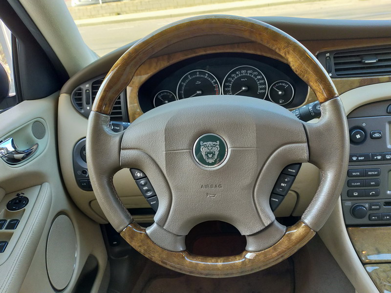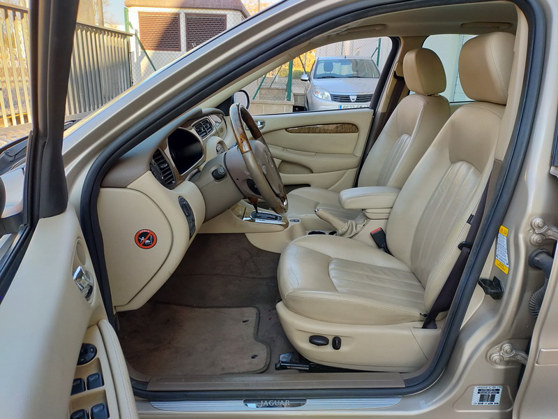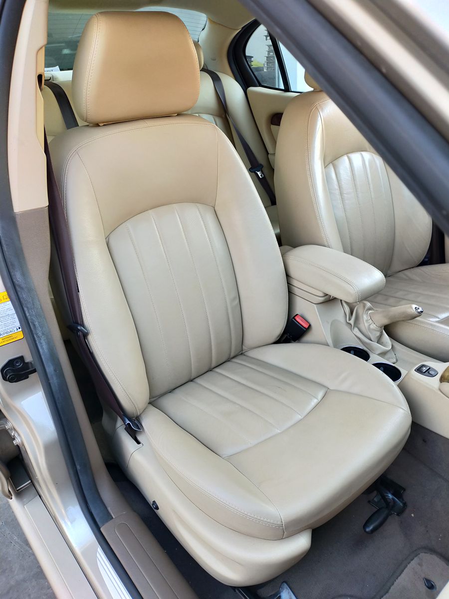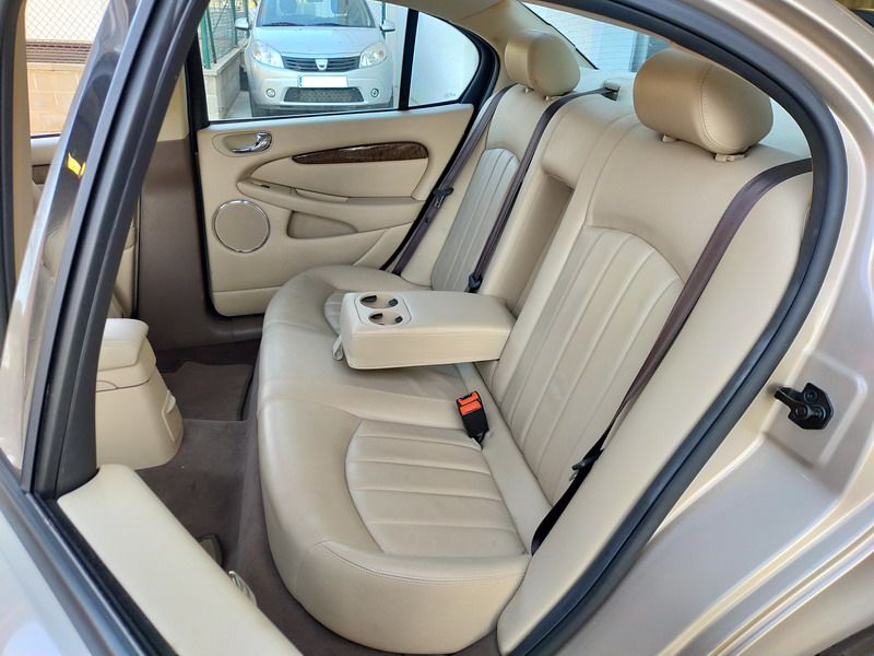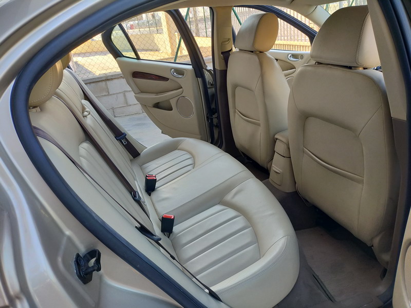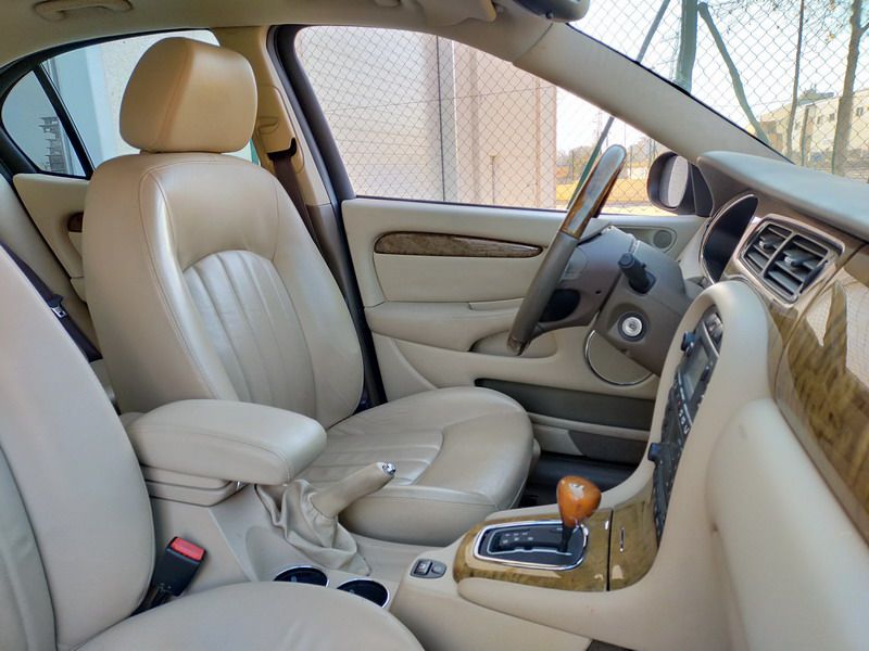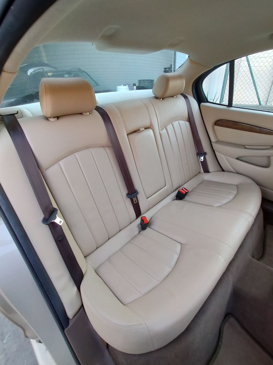 Jaguar X-TYPE 2.5i V6 Executive 195 CV AWD (4x4) Automático. Año 29/09/2003. Color Beige Metalizado. Climatizador, ABS, ESP, 8 Airbags, Asientos de Cuero Beige Eléctricos y con Calefacción, Radio-CD Original Jaguar con Mandos en el Volante, Llantas 16", Volante de Madera y Cuero Multifuncional, Control de Velocidad (Tempomat), Faros Antiniebla, Dirección Asistida, 4 Elevalunas Eléctricos, Cierre Centralizado con Mando, Reposabrazos Centrales, Retrovisores Eléctricos y Retractiles, Alarma Original, Ordenador de Viaje