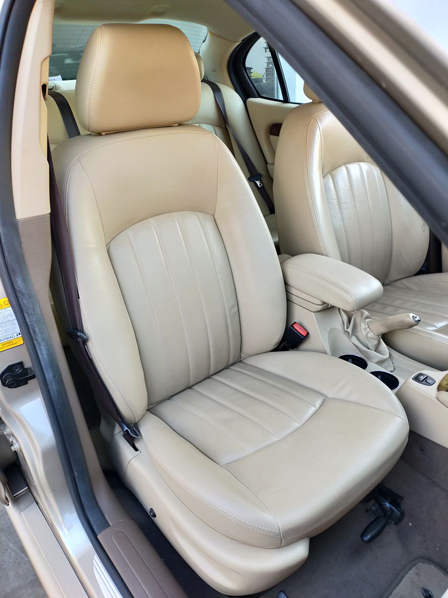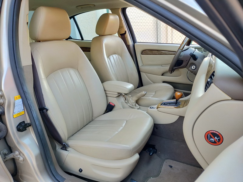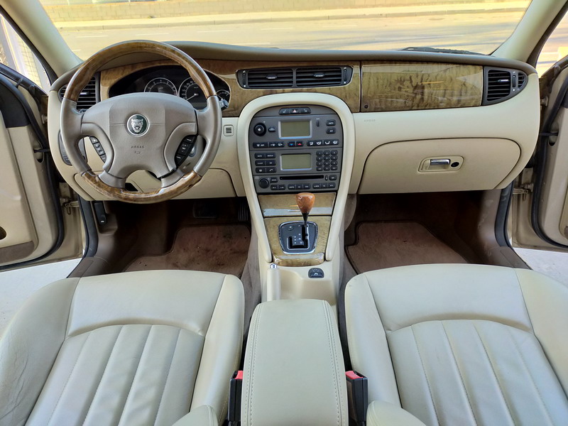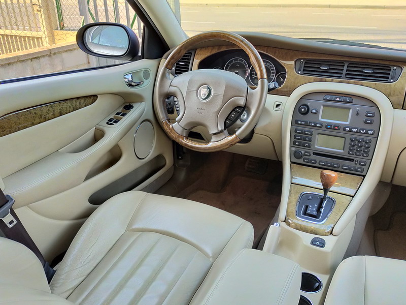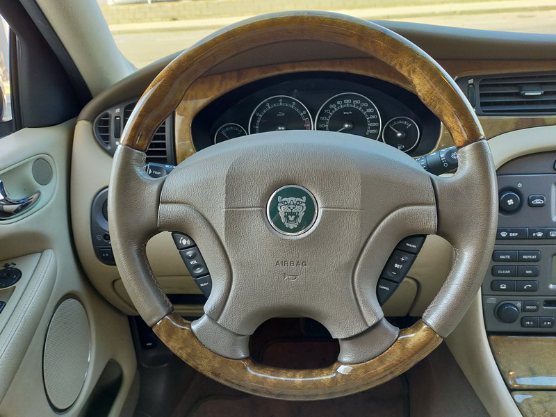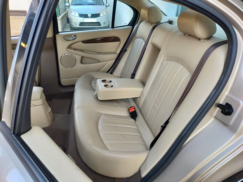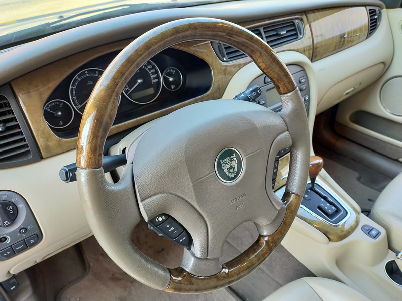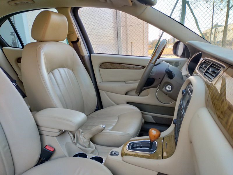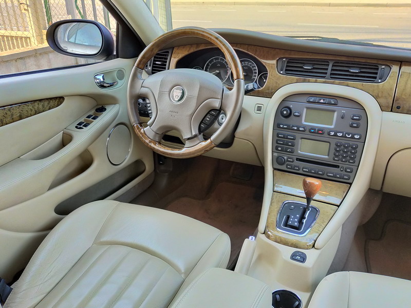 Jaguar X-TYPE 2.5i V6 Executive 195 CV AWD (4x4) Automático. Año 29/09/2003. Color Beige Metalizado. Climatizador, ABS, ESP, 8 Airbags, Asientos de Cuero Beige Eléctricos y con Calefacción, Radio-CD Original Jaguar con Mandos en el Volante, Llantas 16", Volante de Madera y Cuero Multifuncional, Control de Velocidad (Tempomat), Faros Antiniebla, Dirección Asistida, 4 Elevalunas Eléctricos, Cierre Centralizado con Mando, Reposabrazos Centrales, Retrovisores Eléctricos y Retractiles, Alarma Original, Ordenador de Viaje