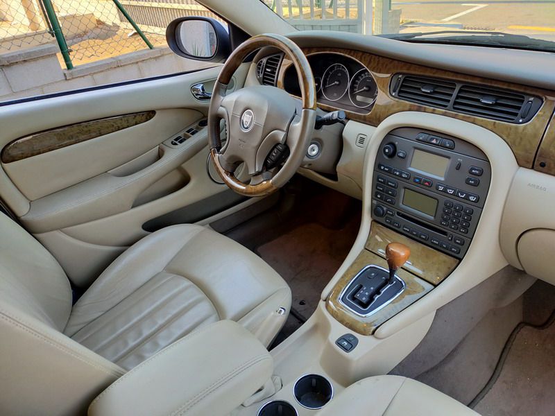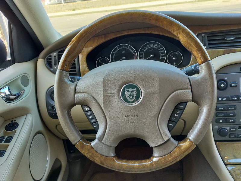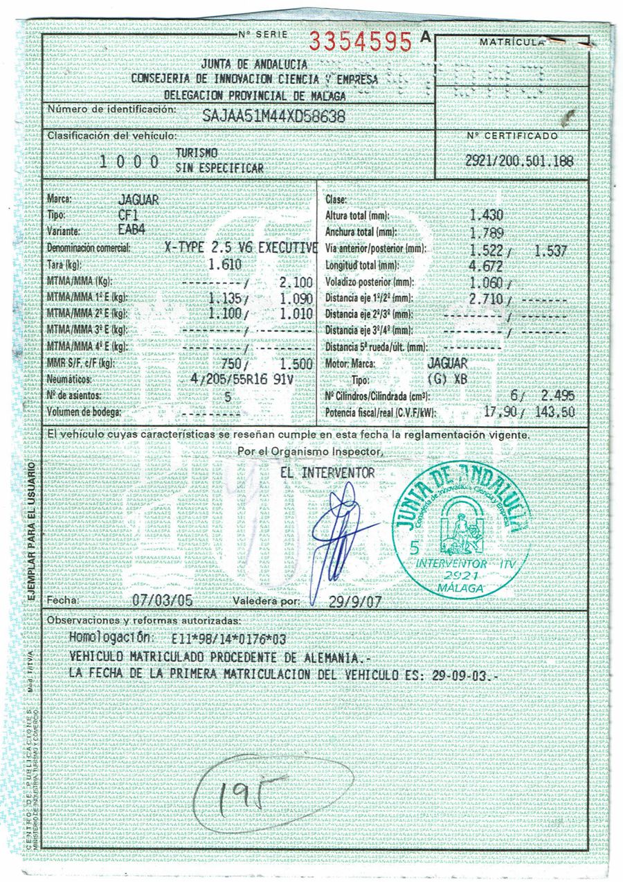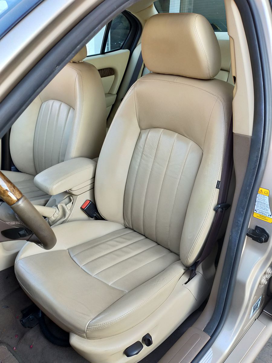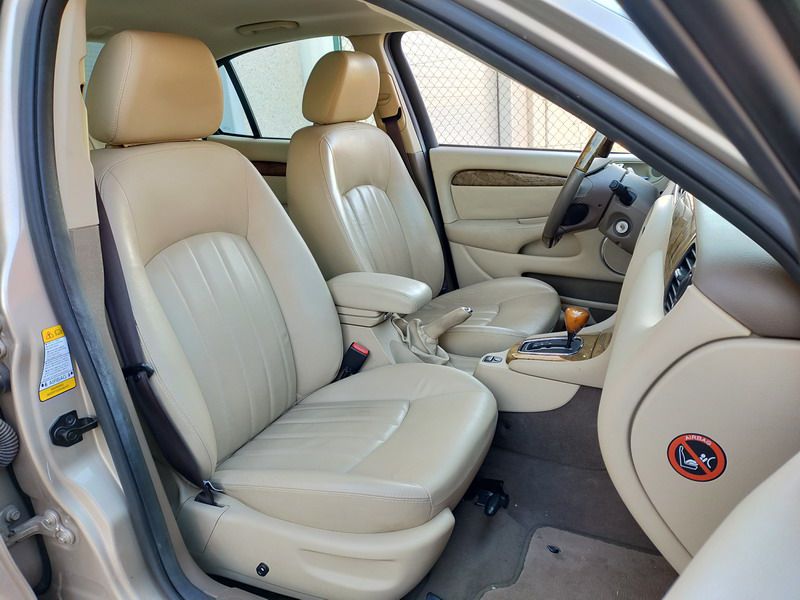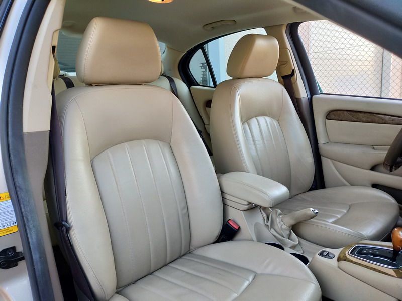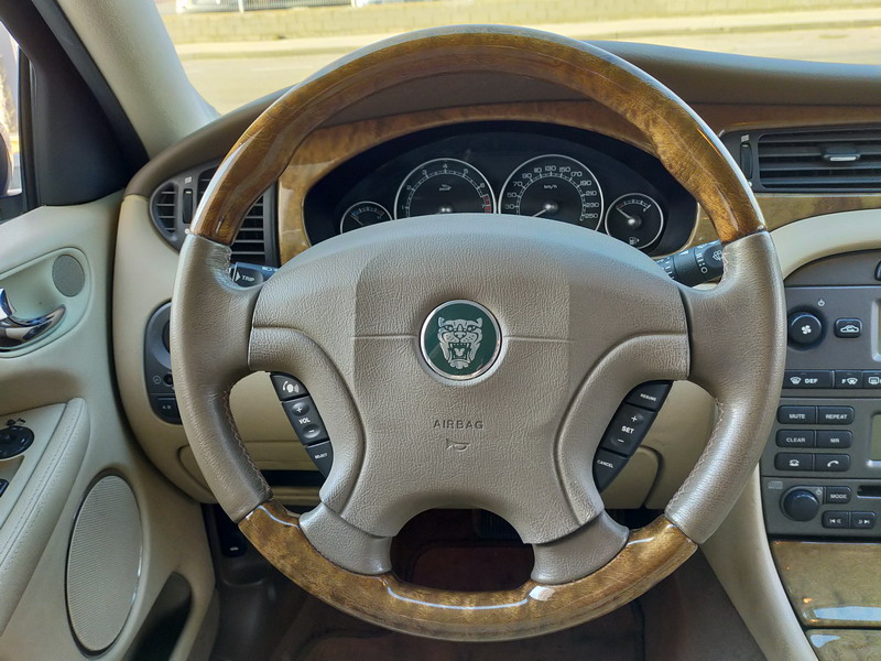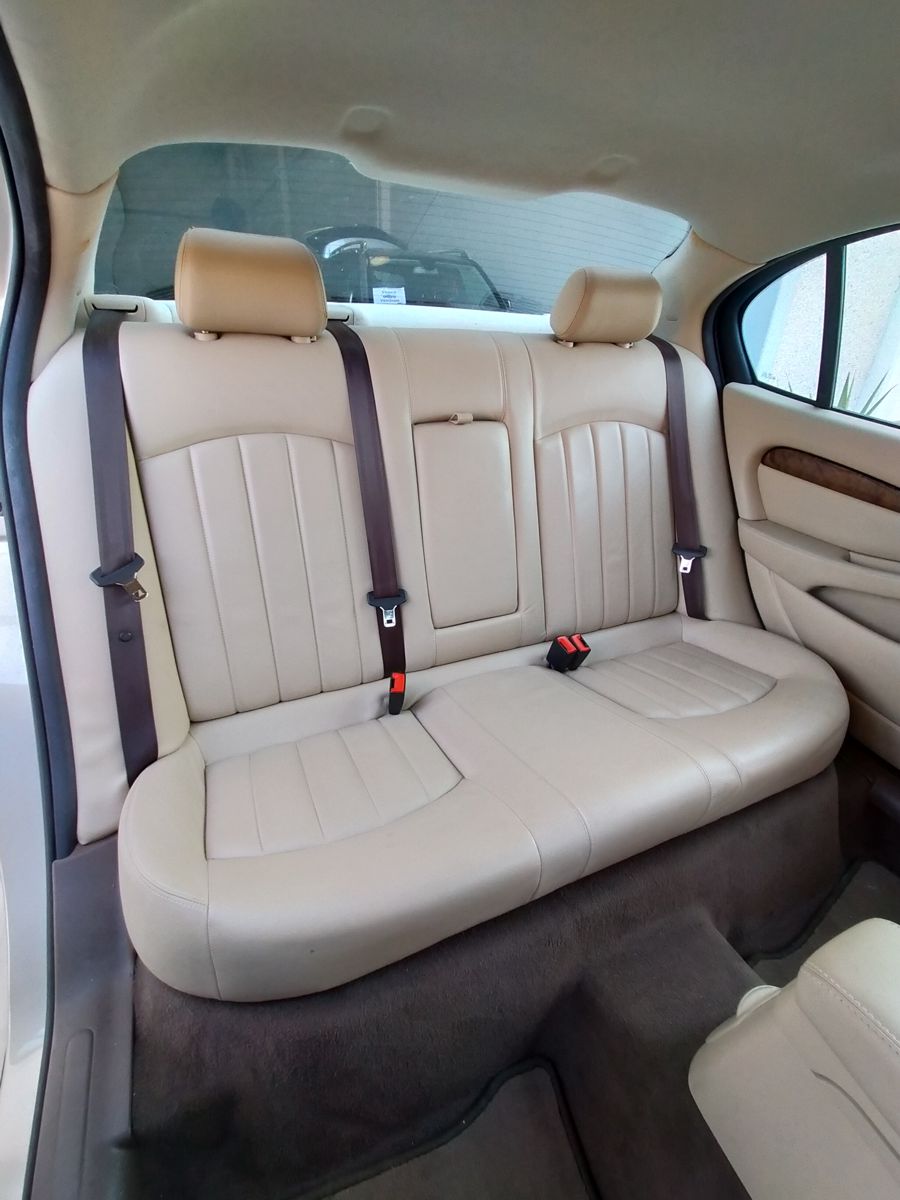 Jaguar X-TYPE 2.5i V6 Executive 195 CV AWD (4x4) Automático. Año 29/09/2003. Color Beige Metalizado. Climatizador, ABS, ESP, 8 Airbags, Asientos de Cuero Beige Eléctricos y con Calefacción, Radio-CD Original Jaguar con Mandos en el Volante, Llantas 16", Volante de Madera y Cuero Multifuncional, Control de Velocidad (Tempomat), Faros Antiniebla, Dirección Asistida, 4 Elevalunas Eléctricos, Cierre Centralizado con Mando, Reposabrazos Centrales, Retrovisores Eléctricos y Retractiles, Alarma Original, Ordenador de Viaje