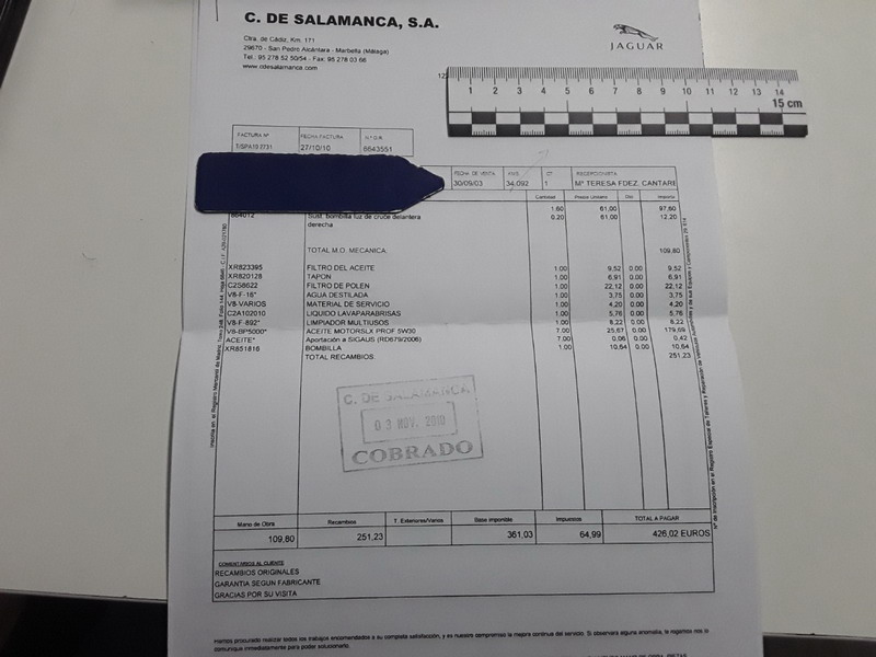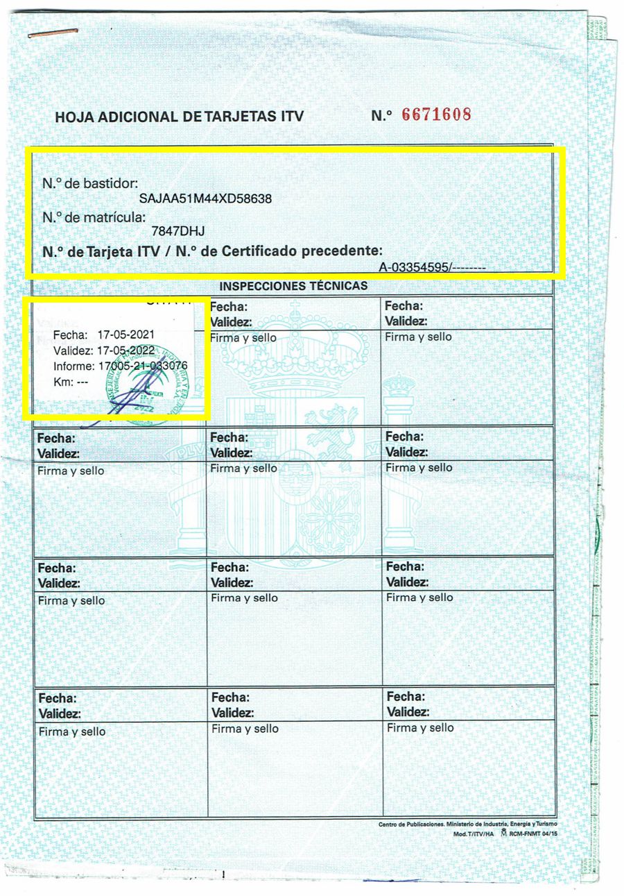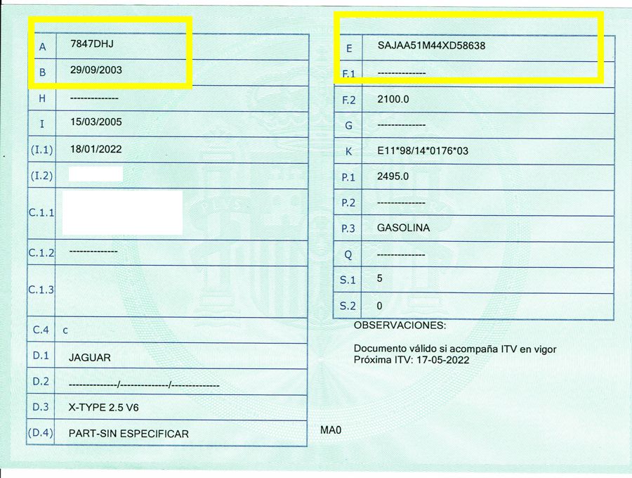 Se Facilita Matricula y Numero de Bastidor para Consultas en la DGT o CARFAX.