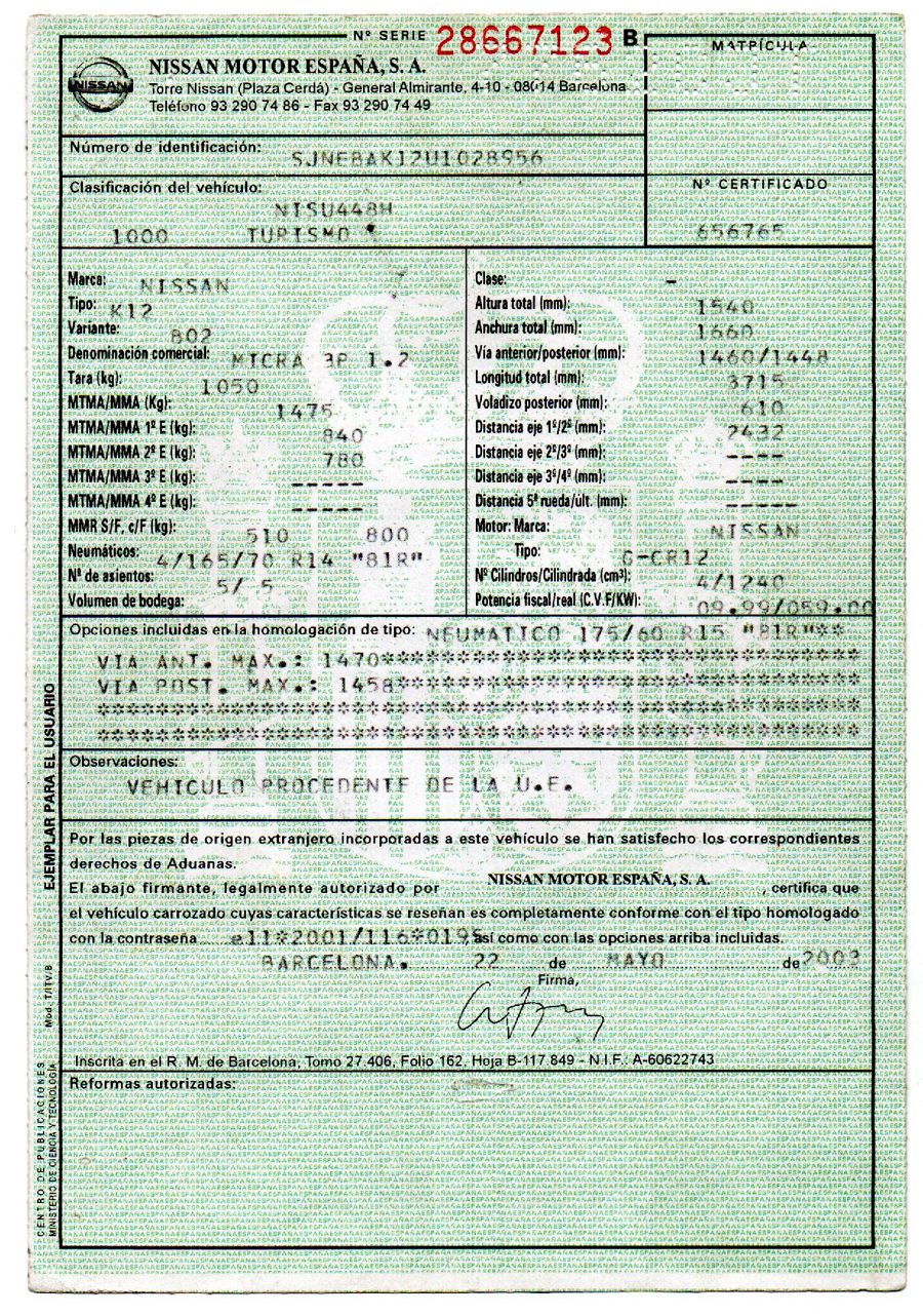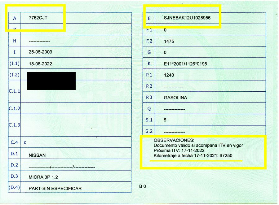 Se Facilita Matricula y Numero de Bastidor para Consultas en la DGT o CARFAX.