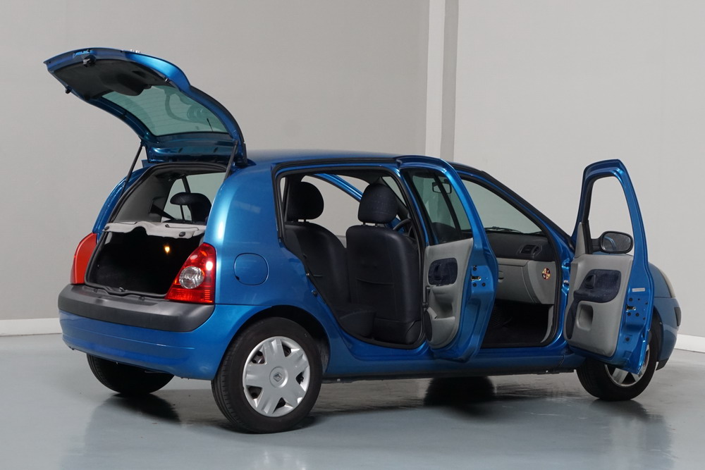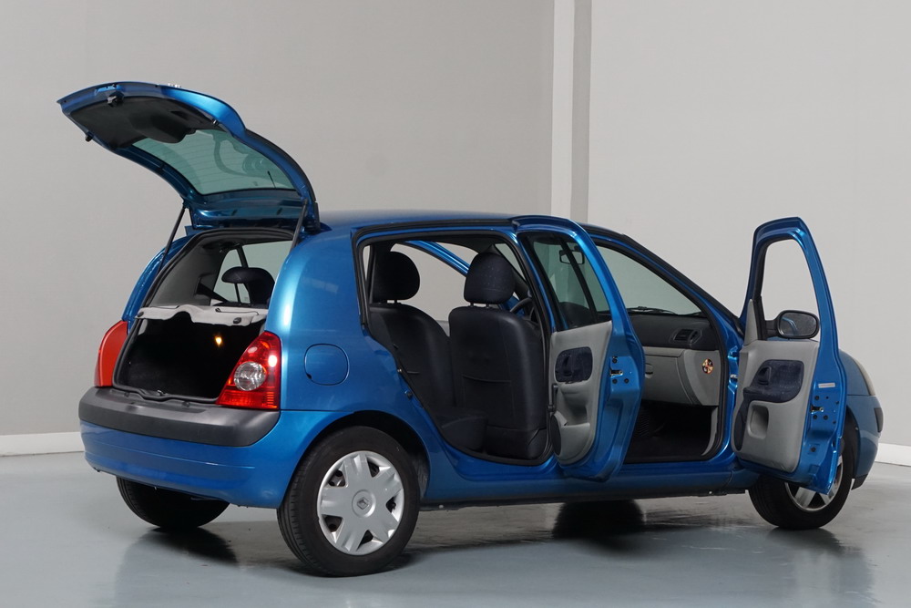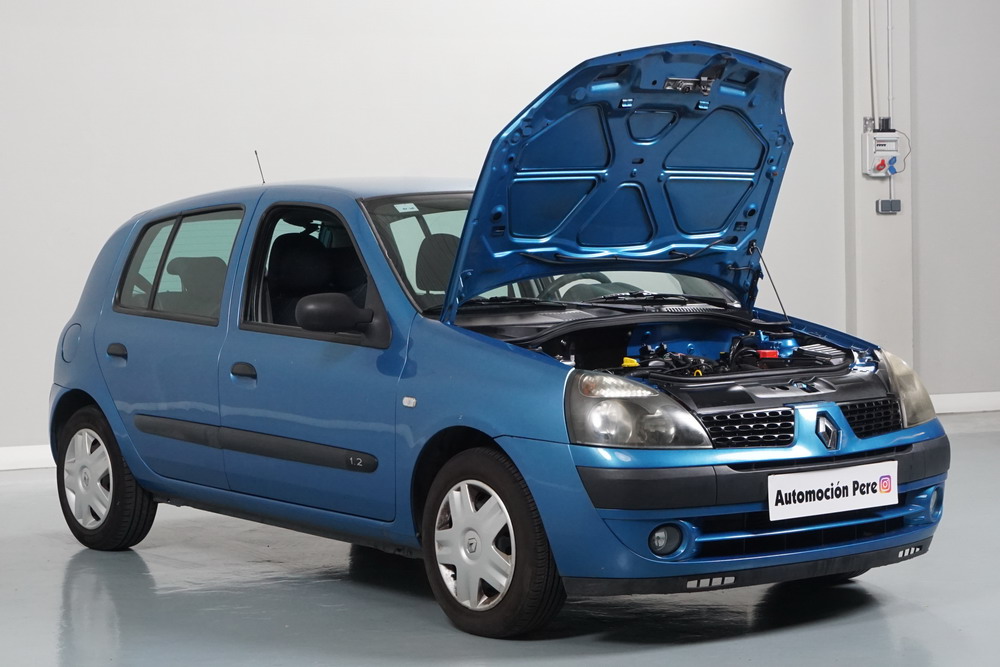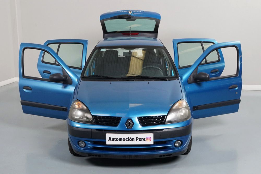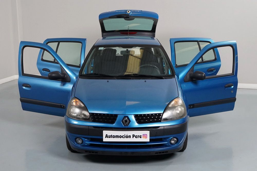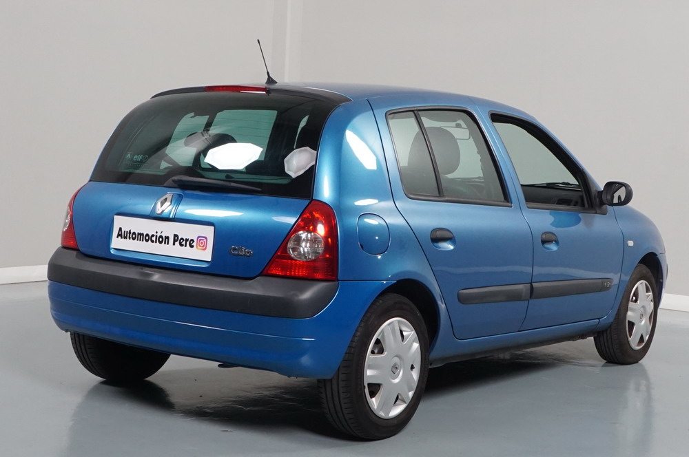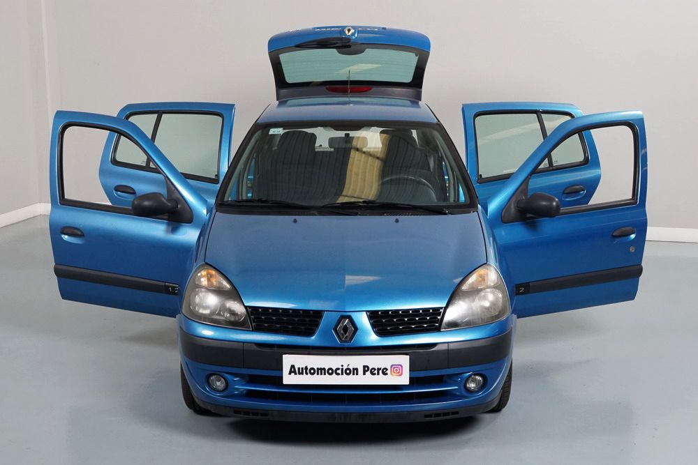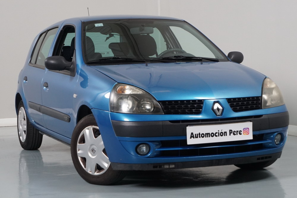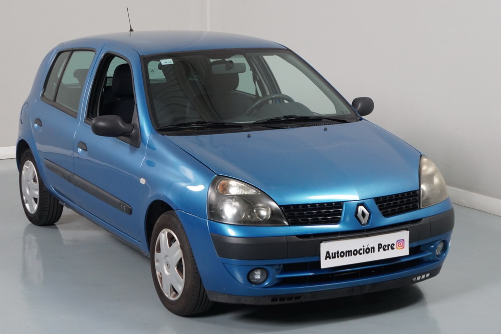 RENAULT CLIO 1.2i 60 CV Expressión. Año 29/05/2003. Color Azul Metalizado. 5 Puertas. Aire Acondicionado, ABS, 4 Airbags, Cierre Centralizado con Mando, Elevalunas Eléctricos, Asientos Traseros con 2 ISOFIX, Radio/CD, Volante y Asiento del Conductor Regulable en Altura, Faros Antiniebla. Muy Buen Estado.