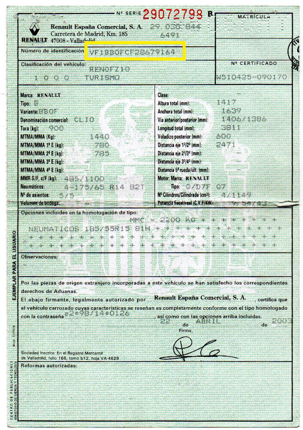 Bastidor: VF1BB0FCF28679164