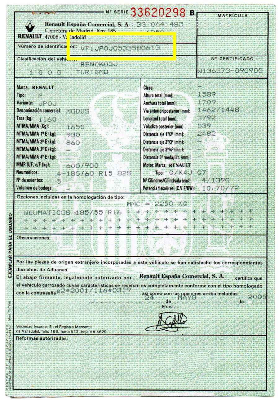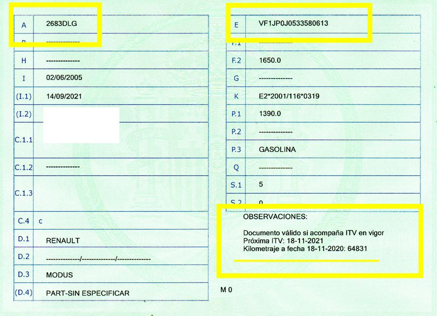 Se Facilita Matricula y Numero de Bastidor para Consultas en la DGT o CARFAX.