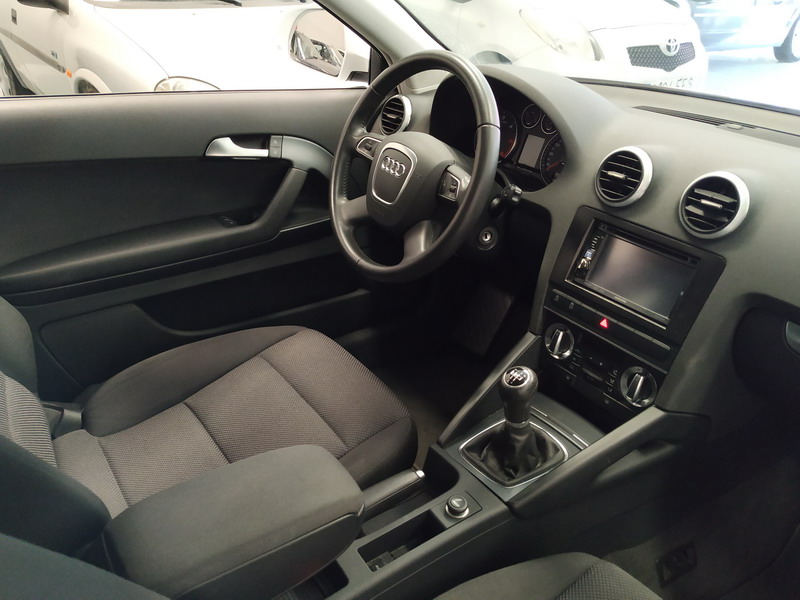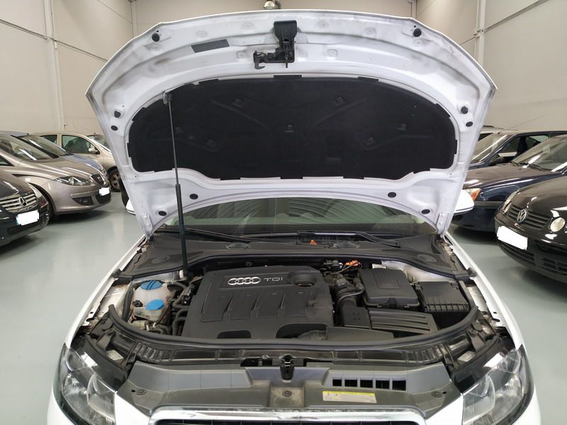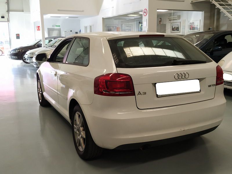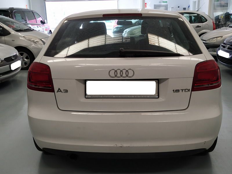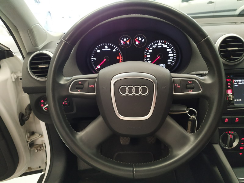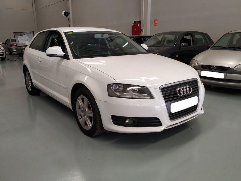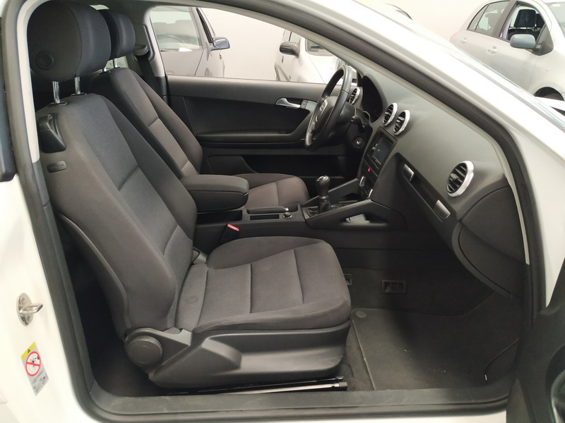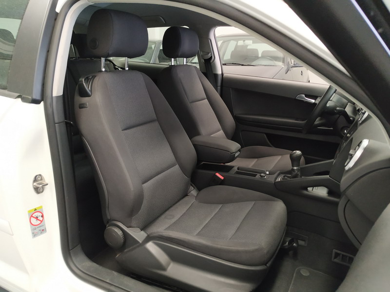 Audi A3 1.6 TDi 105 CV Attraction. Año 03/11/2010. Color Blanco. 3 Puertas. Climatizador Bi-Zona, Sistema antibloqueo (ABS), Programa electrónico de estabilidad (ESP). 8 Airbags, Start/Stop, Llantas 16", Sistema información conductor (FIS), Elevalunas Eléctricos, Cierre Centralizado con Mando, Radio/CD+MP3 Conector-USB Audi Exclusive, Faros Antiniebla, Volante de Cuero Regulable, Retrovisores Eléctricos, Dirección Asistida, Reposabrazos central delantero.