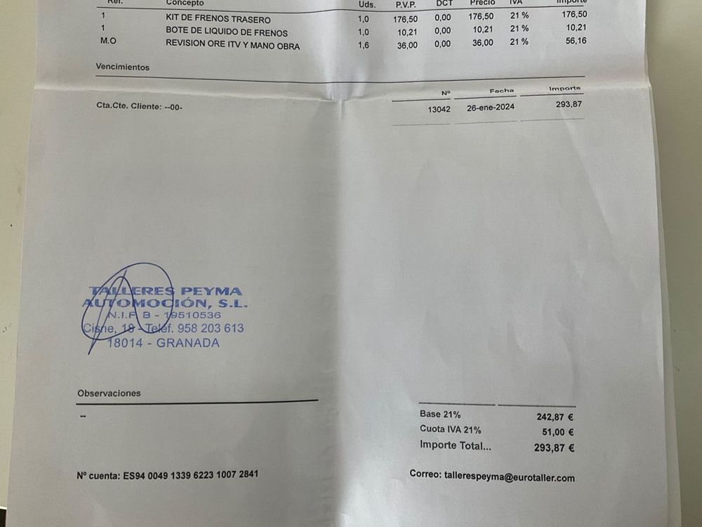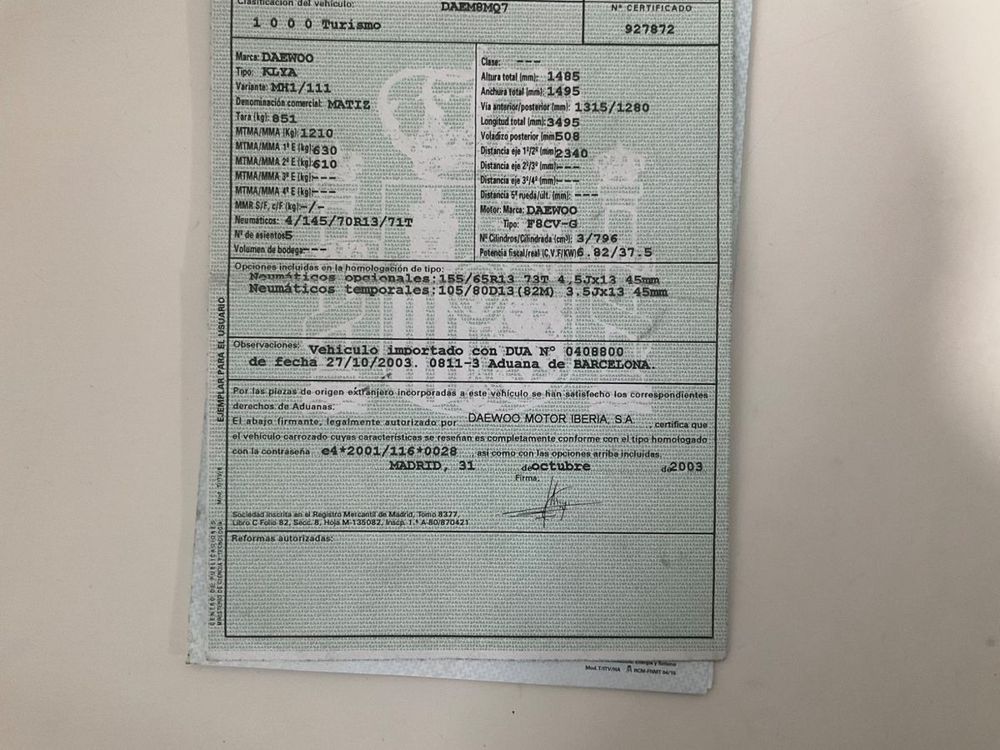 Se Facilita Matricula y Numero de Bastidor para Consultas en la DGT o CARFAX.