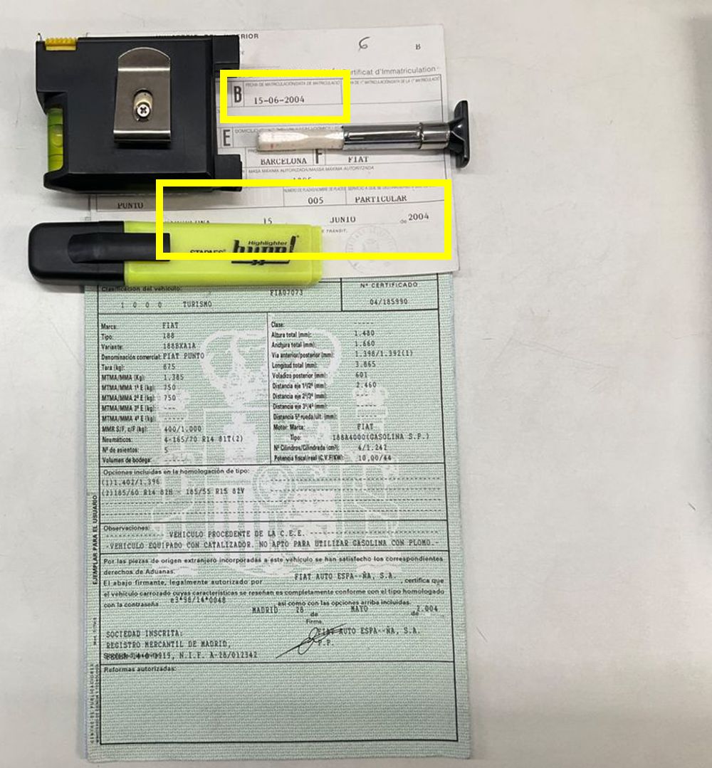 Se Facilita Matricula y Numero de Bastidor para Consultas en la DGT o CARFAX.