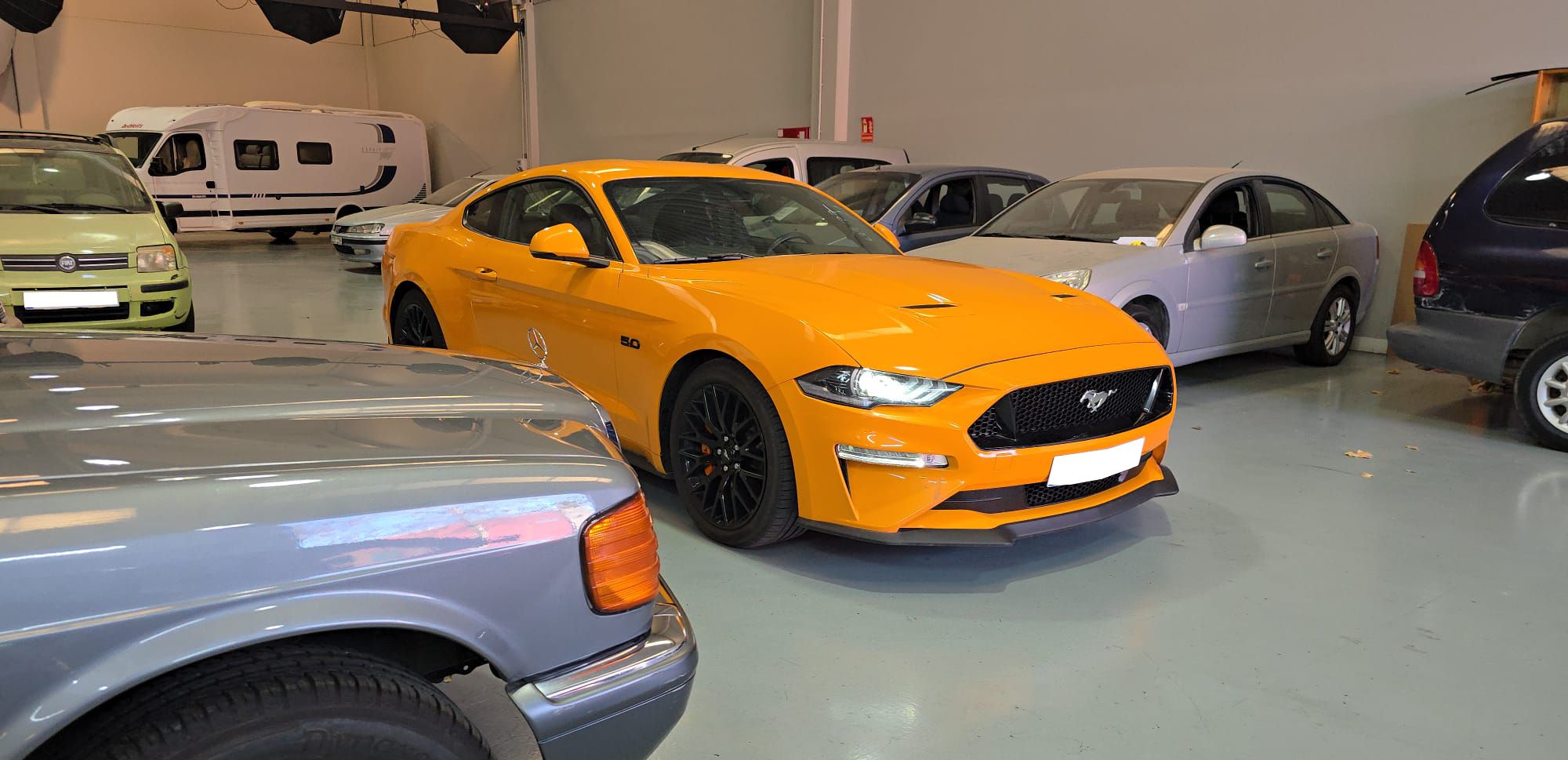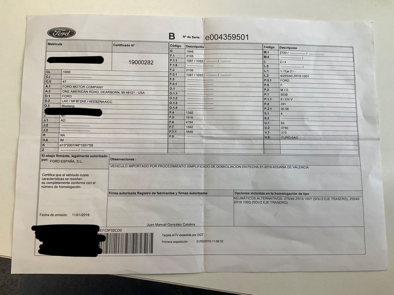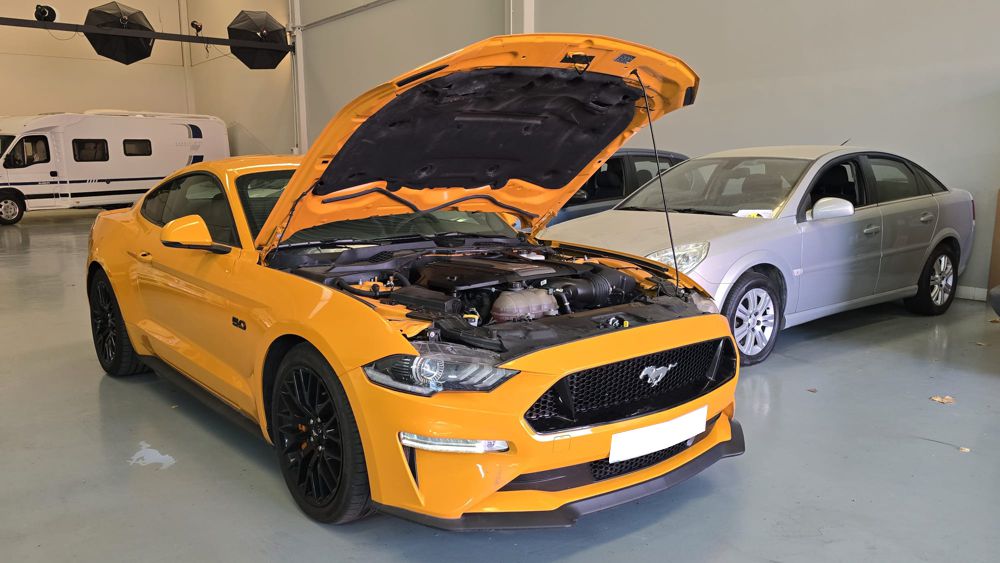 Ford Mustang 2.0 Ti-VCT V8 GT 450 CV 10 Velocidades. Año 21/02/2019.Pintura especial Tropical-Orange. Climatizador automático 2-zonas, Asientos delanteros de Cuero climatizados con Calefacción, Cámara de marcha atrás, Sistema de asistencia para aparcamiento trasero, Dirección asistida eléctrica, Sistema de control por voz y Instalación Bluetooth, Preinstalación Teléfono móvil con Bluetooth-/USB-interfaz, Sistema audio-navegador Ford SD (con Ford SYNC) & Premium Sound Sistema, Ford SYNC 3 con Navegador, 8 Airbags, Diferencial de deslizamiento limitado, Diferencial autoblocante, ESP Programa electrónico de estabilidad (AdvanceTrac), Programa electrónico de estabilidad (ESP), Control de crucero adaptable (Control de crucero adaptable / ACC), Ordenador de a bordo, Alarma antirrobo con Vigilancia del habitáculo interior adicional con suministro eléctrico independiente, Sistema de sonido Bang & Olufsen Play, Audiosystem: Radio / CD-Player, Sistema antibloqueo de frenos (ABS), Asistente a la conducción: sistema de seguridad SYNC con automático Aviso de socorro, Tapicería asientos: cuero Premium, Caja de cambios automática - Modelo: 10R80 (10-marchas), Retrovisor exterior regulable eléctricamente y calefactable, Tubo de potencia doble Sistema de escape, Luneta trasera calefactable, Palanca del freno de mano cuero, Sistema de escape con Control de la válvula de mariposa, Volante calefactable, 12 Altavoces, Pintura especial Tropical-Orange, Tensor del cinturón, Faro LED, Mandos audio en volante, Tren de rodaje con Regulación amortiguador (MagneRide), Asistente a la conducción: Asistente de subidas (Hill-Holder), Asistente a la conducción: Sistema pre-colisión, Sistema-KeyFree, Luces antiniebla LED, Función encendido: Power KeyFree, Sistema de asistencia al conductor: asistencia a la frenada de emergencia, Parachoques detrás Diseño Sport con Difusor, Lavafaros (Equipo lavafaros), Volante (Cuero), Sistema control presión neumáticos, Llantas de aleación delante / detrás 9x19 / 9 5x19 (10 radios Y-Design negro brillante), Salpicadero Parte superior piel, Paquete Premium 2, Sistema Line-Lock, Pedales Aluminio, Paquete Performance, My Key (2. llaves del vehículo programable), Luz del suelo en Retrovisor exterior, Kit reparación de neumáticos, Distribuidor eléctrónico de frenada, Conexión AUX-IN, Intermitente en Retrovisor exterior integrado, Limpiaparabrisas con Sensor de lluvia, Cierre centralizado con Mando a distancia.