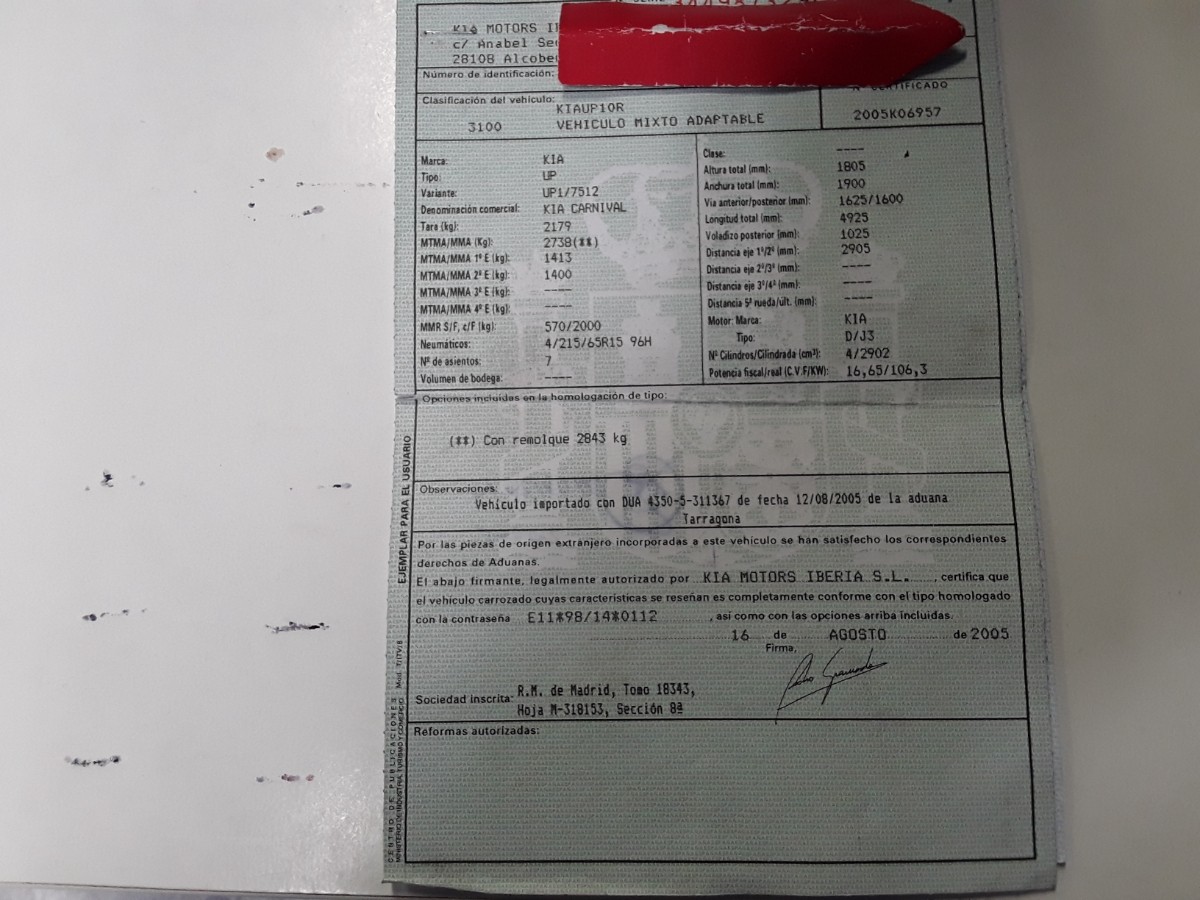 Kia Carnival 2.9 CRDi 145 CV 7 Plazas LX. Año 15/03/2006. Color Beige Metalizado. Climatizador, ABS, 4 Airbags, Elevalunas Eléctricos, Cierre Centralizado con Mando, Dirección Asistida, Reposabrazos en todas las Plazas, Llantas, Faros Antiniebla, Volante de Cuero regulable en Altura, Radio/CD. Muy Buen Estado.