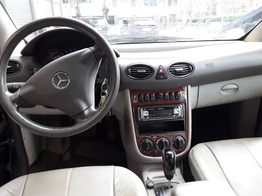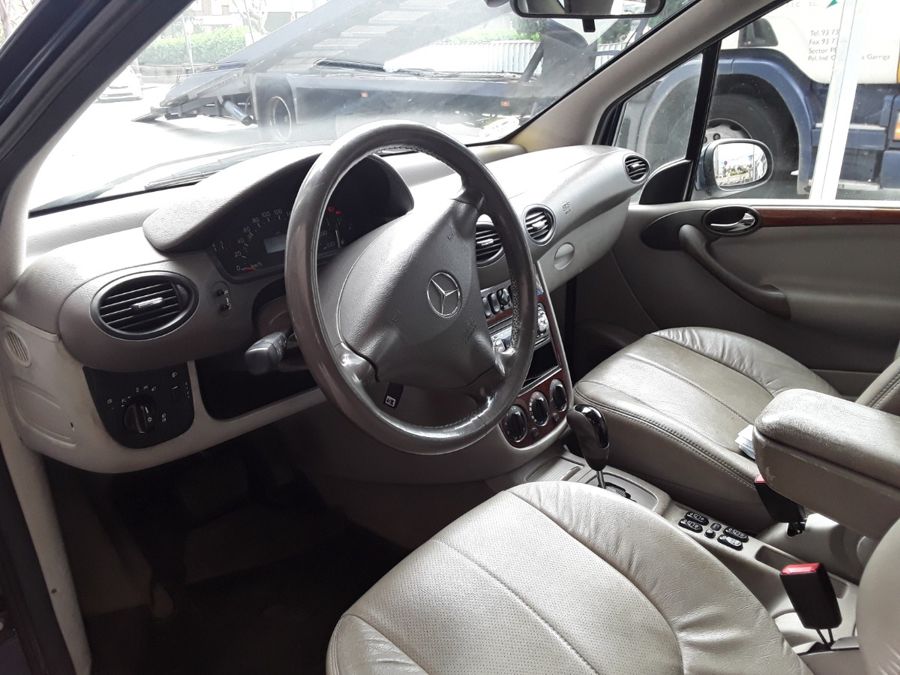 Mercedes Benz A 160L Elegance Automático. Año 07/05/2003. Color Azul Metalizado. 5 Puertas. Climatizador, ABS, ESP, Asientos de Cuero Beige, 4 Elevalunas Eléctricos, Cierre Centralizado con Mando, Retrovisores Eléctricos, Radio/CD, Faros Antiniebla, Dirección Asistida, Ordenador de Viaje, Reposabrazos Central delantero, Volante de Cuero Regulable, Llantas. Muy Buen Estado.