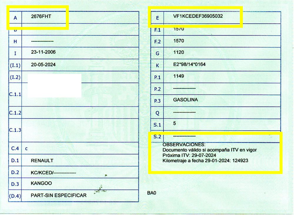 Se Facilita Matricula y Numero de Bastidor para Consultas en la DGT o CARFAX.