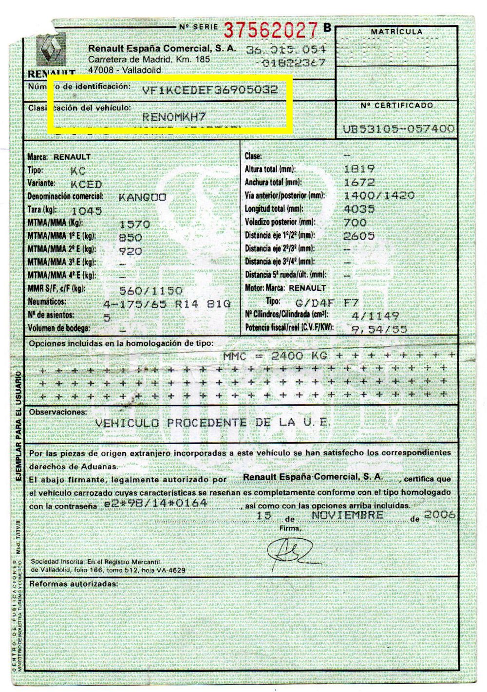 Bastidor: VF1KCEDEF36905032