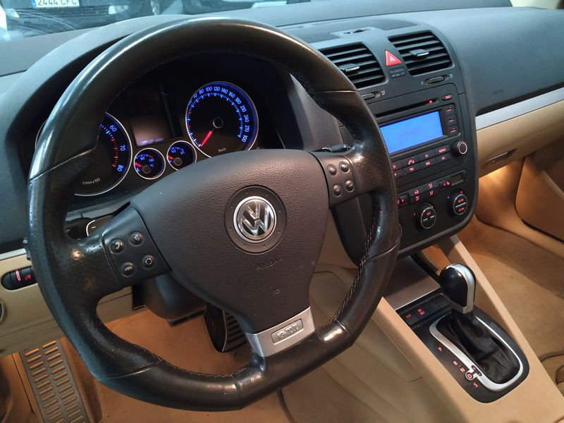 Volkswagen Golf 2.0 TFSi GTi 200 CV Turbo Cambio DSG/6. Color Negro Metalizado. 3 Puertas. Año 26/04/2005. Climatizador Bi-Zona, ABS, ESP, 8 Airbags, Faros Bi-Xenón y Antiniebla, Asientos de Cuero Deportivos Color Beige con Calefacción, Ordenador de Viaje, Radio/CD+MP3, Elevalunas Eléctricos, Cierre Centralizado con Mando, Retrovisores Retractiles, Tren de rodaje deportivo, Volante Sport de Cuero Multifuncional, Sensor de Luces, Control y Limitador de Velocidad (Tempomat). Muy Equipado.