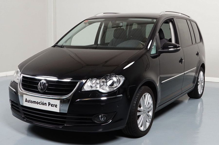 Volkswagen Touran 2.0 TDi 140 CV 6 Vel Sport. Año 04/05/2010. Color Negro Metalizado. Aire acondicionado Climatronic 2-zonas, Sistema antibloqueo (ABS), Programa electrónico de estabilidad (ESP), 10 Airbags, Llantas 17", Faros Bi-Xenon con luz de curva dinámica, Sensores de distancia para aparcamiento, Sistema de audio RCD 510 (Radio/Cargador de CD's 6 posiciones, 8 Altavoces), Alarma antirrobo con Protección del habitáculo interior, Sensores de distancia para aparcamiento (Delantero y Trasero), Asientos delanteros regulables en altura, Faros Antiniebla, Barras en el Techo, Volante de Cuero Multifuncional, Control de Velocidad (Tempomat) Ordenador de Viaje, Apoyabrazos Central, Cristales tintados originales Volkswagen. Muy Buen Estado. Pocos Kms. Revisiones Selladas.