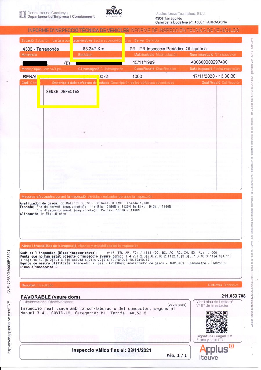 - Disponibilidad total para hacer cualquier prueba dinámica o mecánica por un profesional de su confianza para poder ver, comprobar y diagnosticar su perfecto estado y funcionamiento.