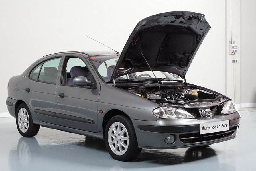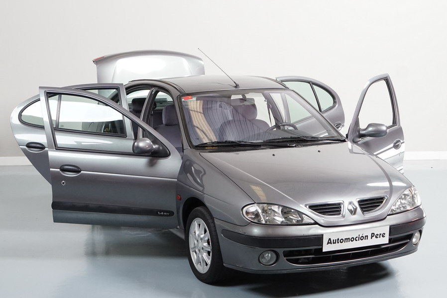 Renault Megane 1.4i 16V 95 CV Classic 4 Puertas. Año 15/11/1999. Color Gris Metalizado. Aire Acondicionado, ABS, 4 Airbags, Dirección Asistida, 4 Elevalunas Electricos, Cierre Centralizado con Mando, Radio con Mandos en el Volante, Llantas 15", Faros Antiniebla, Retrovisores Eléctricos, Volante de Cuero Regulable en Altura. Muy Buen Estado y Pocos Kms.