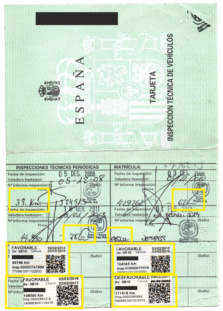 Todas las ITV con los Kms Registrados.