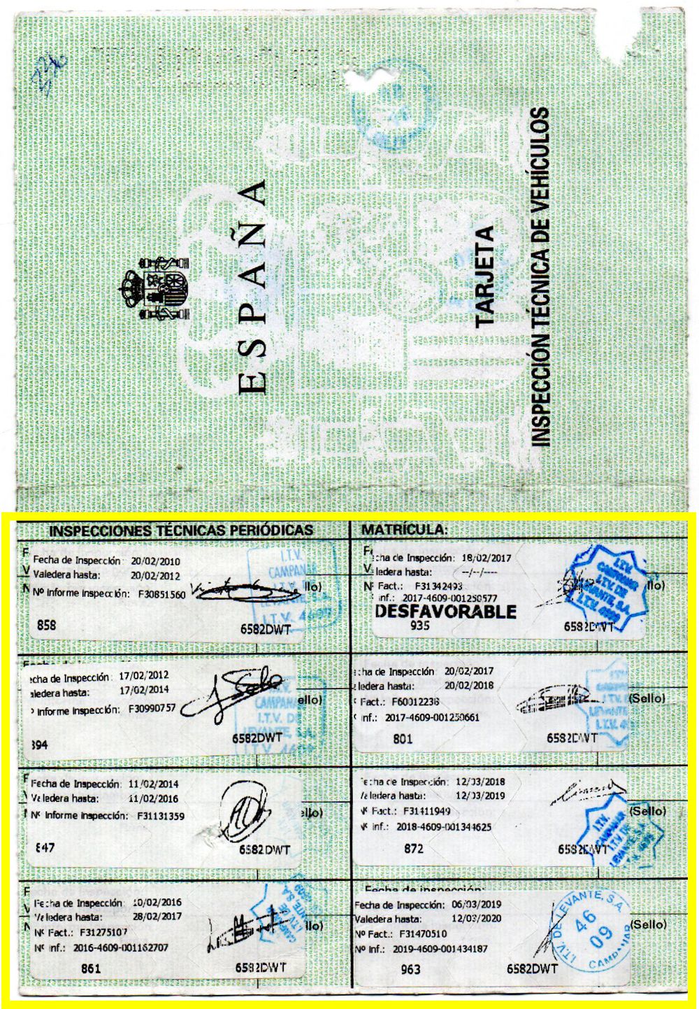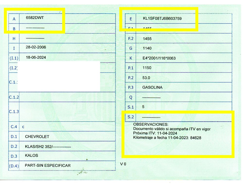 Se Facilita Matricula y Numero de Bastidor para Consultas en la DGT o CARFAX.