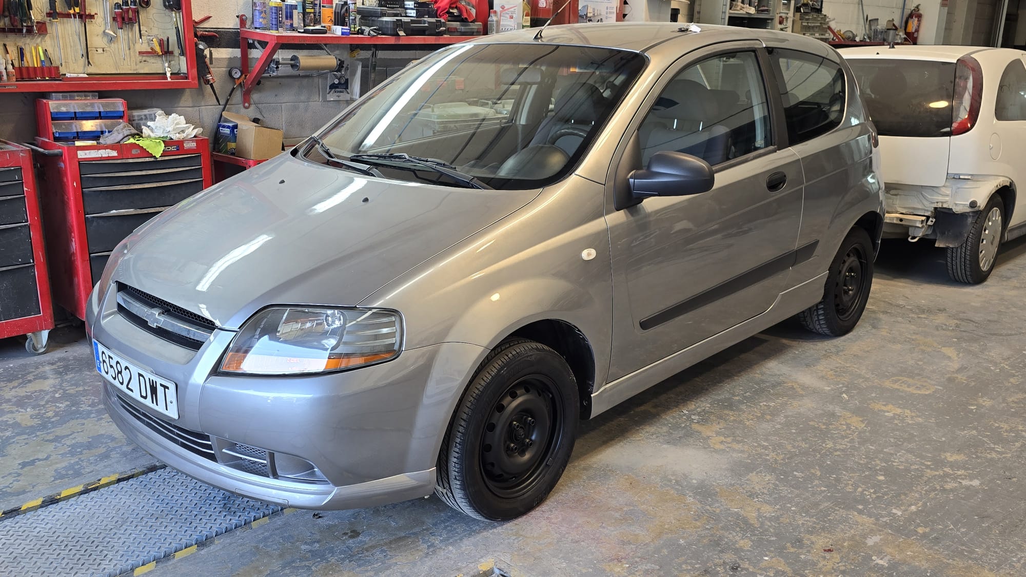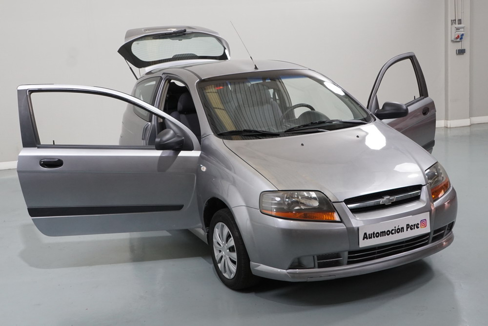 Chevrolet Kalos 1.2i S 72 CV. 3 Puertas. Color Gris Metalizado. Año 28/02/2006 (Pegatina C Verde). Aire Acondicionado, ABS, 4 Airbags, Cierre Centralizado con Mando, Elevalunas Eléctricos, Radio/CD con Bluetooth, Dirección Asistida. Muy Buen Estado. Pocos Kms.