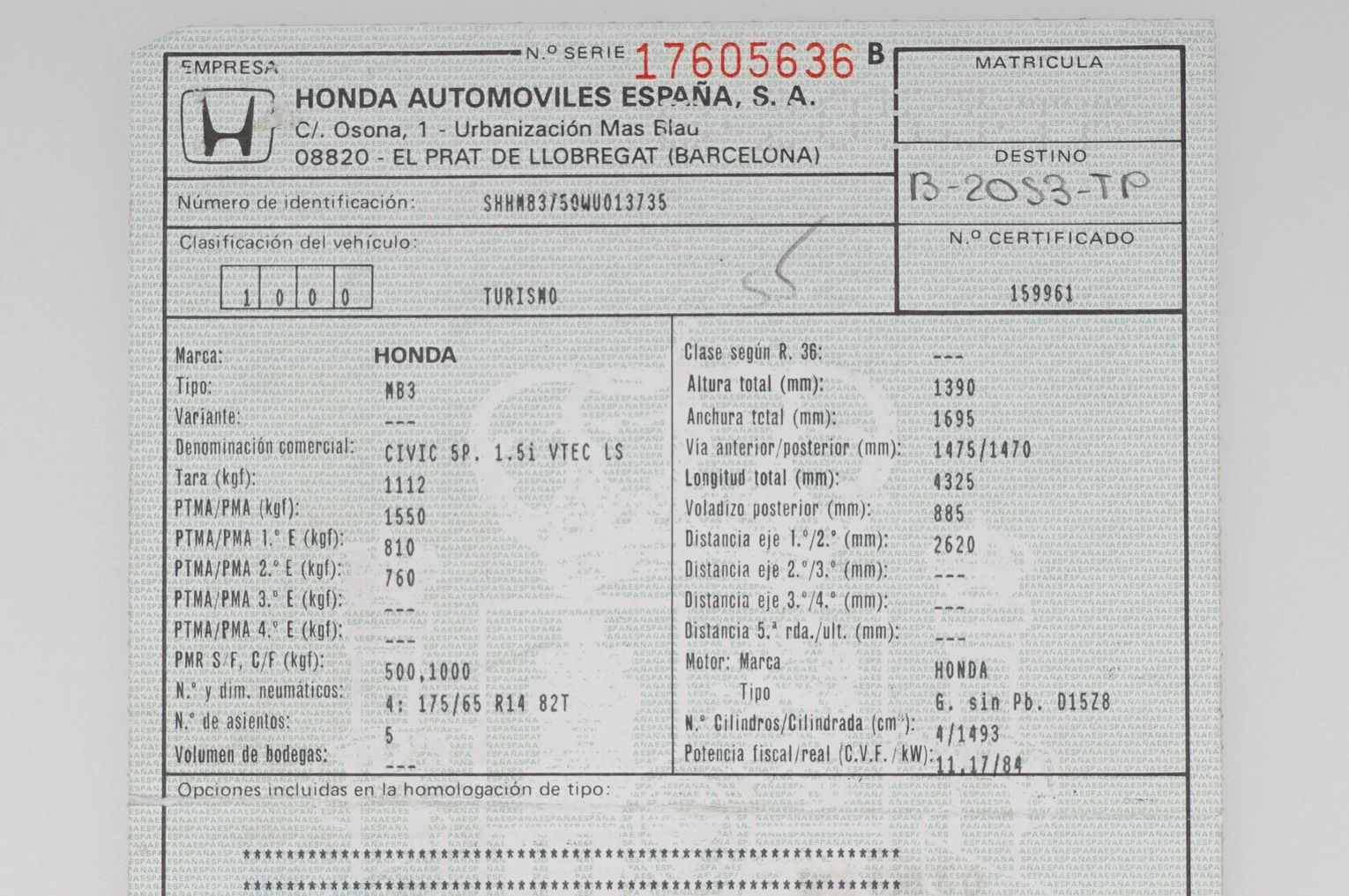 Honda Civic 1.5i 114 CV VTEC LS. Año 24/10/1997, Color Verde Metalizado, Aire Acondicionado, ABS, Doble Airbag, Asientos Deportivos, Dirección Asistida, 4 Elevalunas Eléctricos, Cierre Centralizado, Radio-CD, Faros Antiniebla.