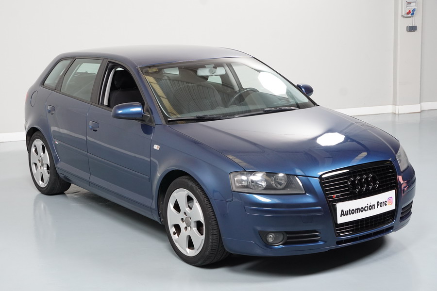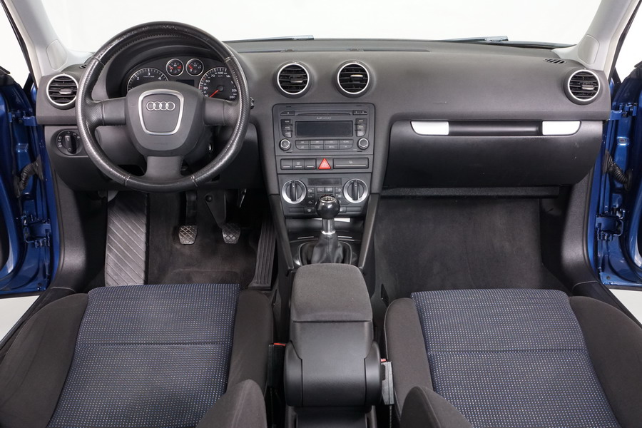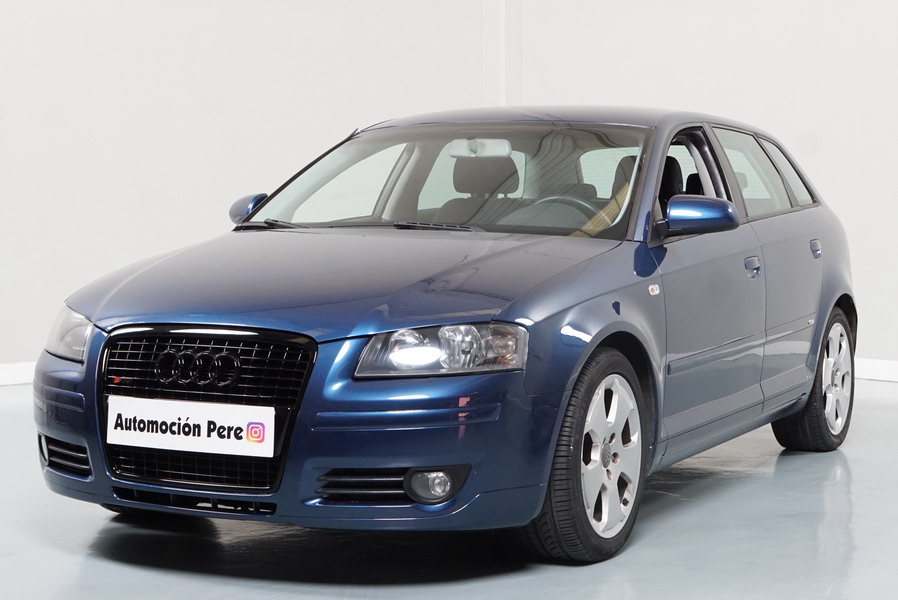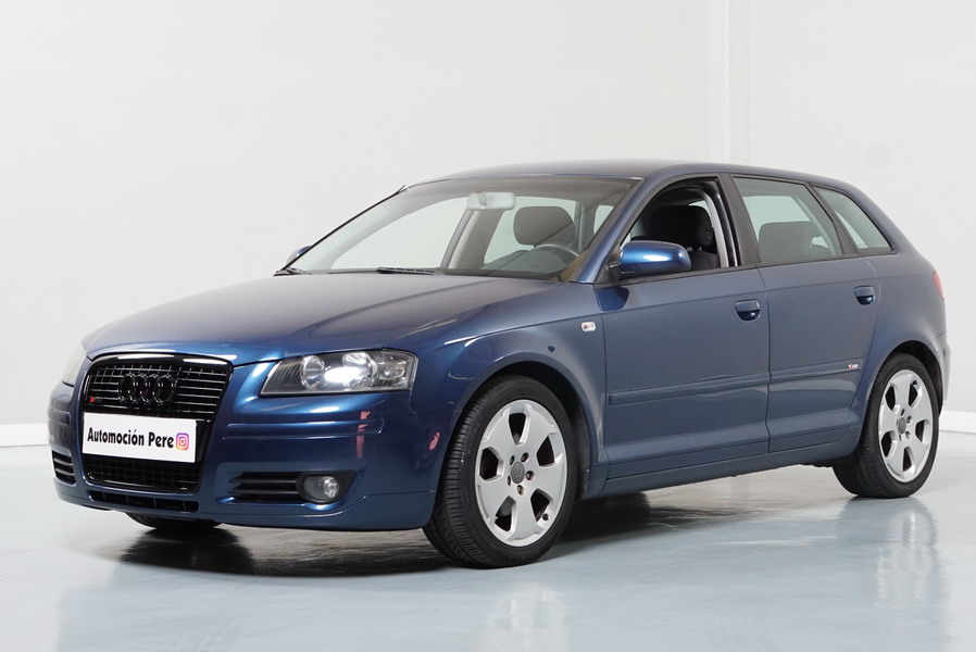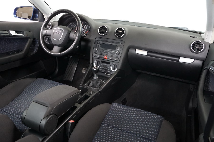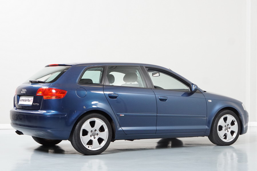 Audi A3 2.0 TDi 140 CV 6 Vel Ambitión SportBack. Año 10/12/2007. Color Azul Metalizado, 5 Puertas. Climatizador Bi-Zona, ABS, ESP, 8 Airbags, 4 Elevalunas Eléctricos, Cierre Centralizado con Mando, Radio/CD+MP3 Original Audi, Apoyabrazos Central Delantero, Ordenador de Viaje, Volante de Cuero, Llantas 17", Faros Antiniebla. Muy Buen Estado. Pocos Kms.