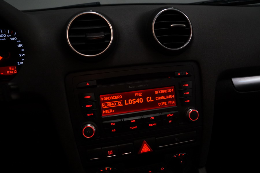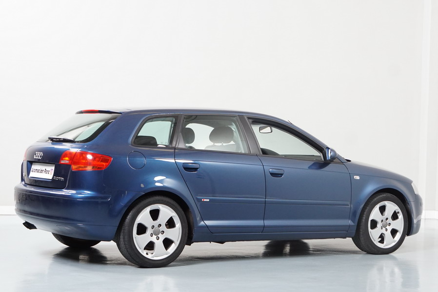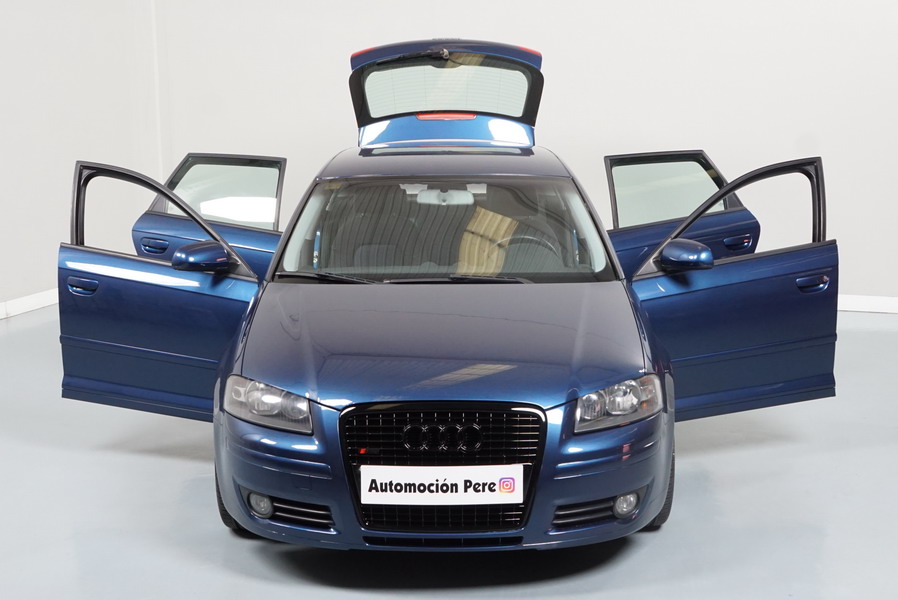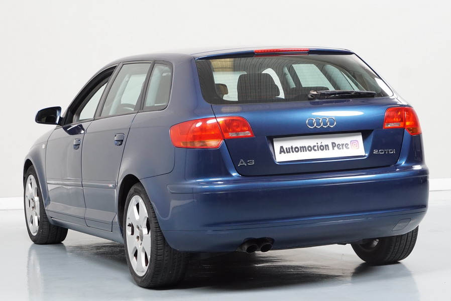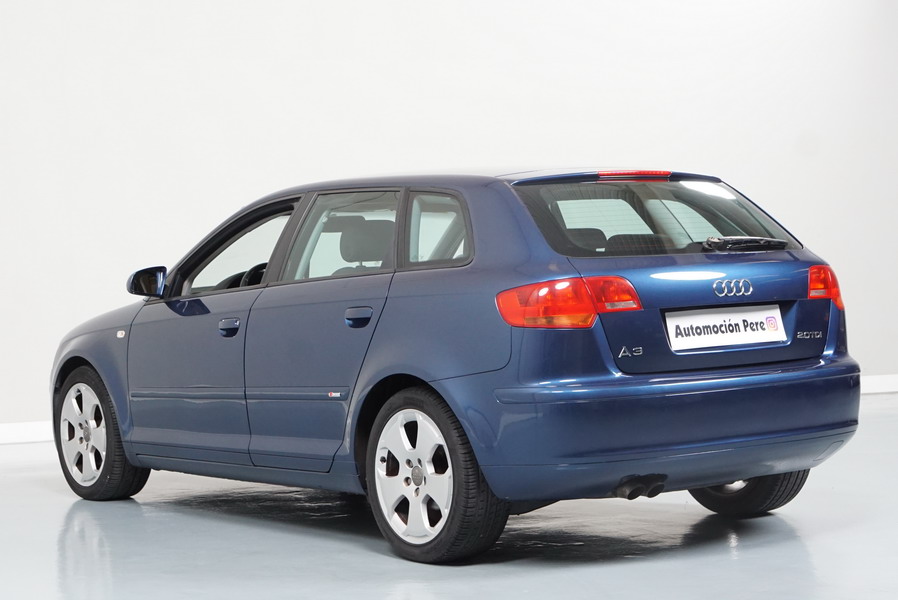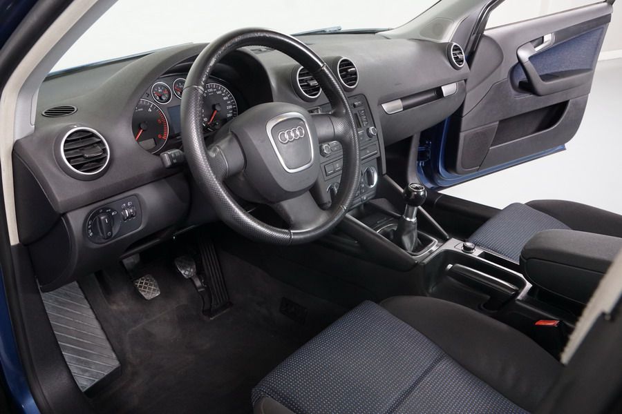 Audi A3 2.0 TDi 140 CV 6 Vel Ambitión SportBack. Año 10/12/2007. Color Azul Metalizado, 5 Puertas. Climatizador Bi-Zona, ABS, ESP, 8 Airbags, 4 Elevalunas Eléctricos, Cierre Centralizado con Mando, Radio/CD+MP3 Original Audi, Apoyabrazos Central Delantero, Ordenador de Viaje, Volante de Cuero, Llantas 17", Faros Antiniebla. Muy Buen Estado. Pocos Kms.